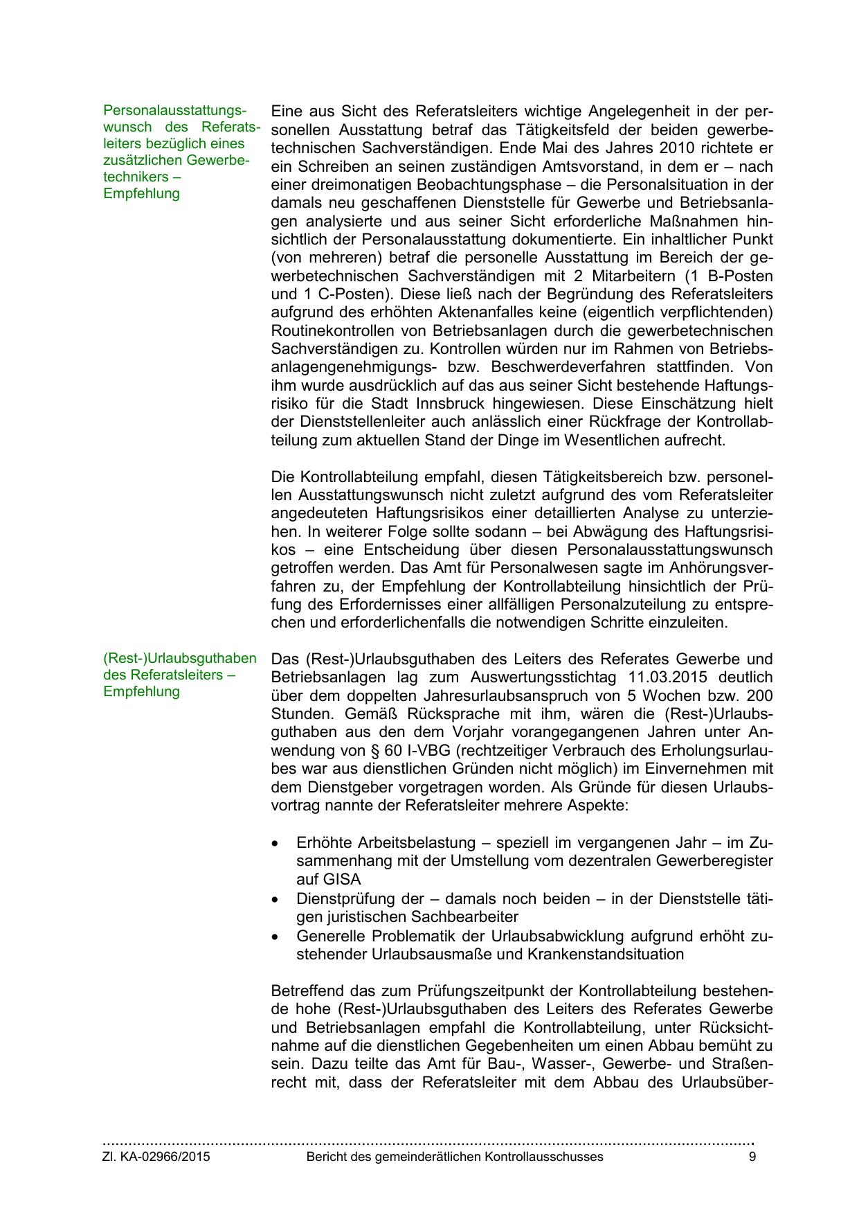 Betreffend das zum Prüfungszeitpunkt der Kontrollabteilung bestehende hohe (Rest-)Urlaubsguthaben des Leiters des Referates Gewerbe