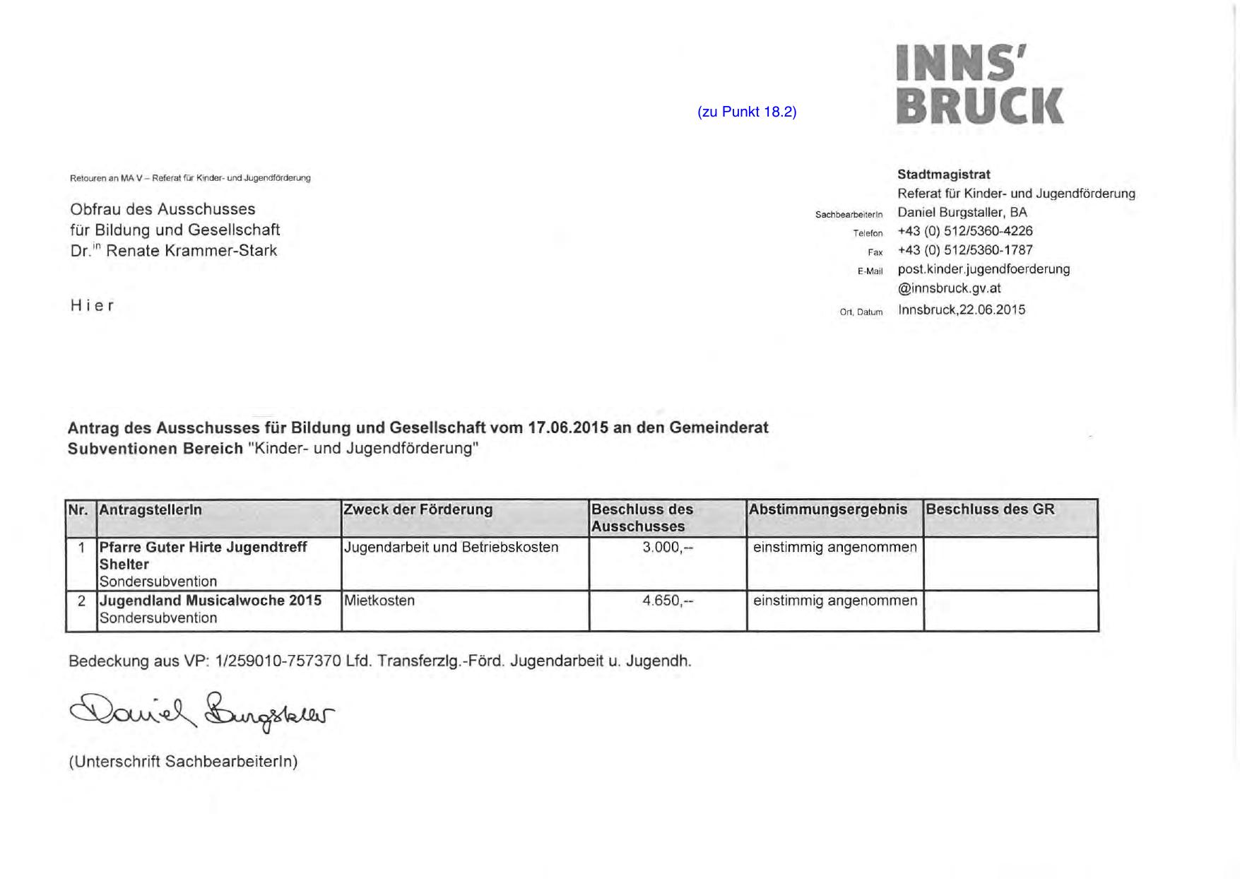 Bedeckung aus VP : 1/259010-757370 Ud . Transferzlg .-Förd . Jugendarbeit u. Jugendh.