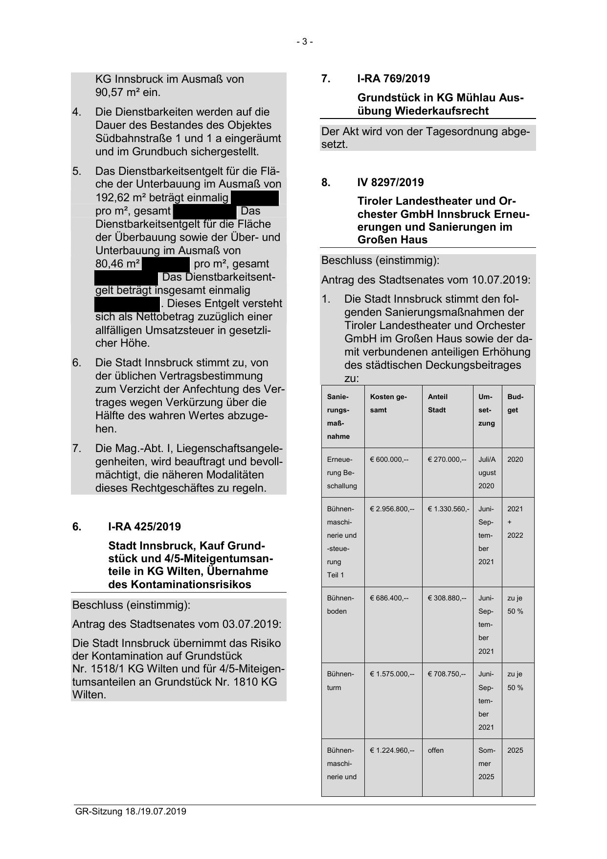 Die Stadt Innsbruck stimmt den folgenden Sanierungsmaßnahmen der