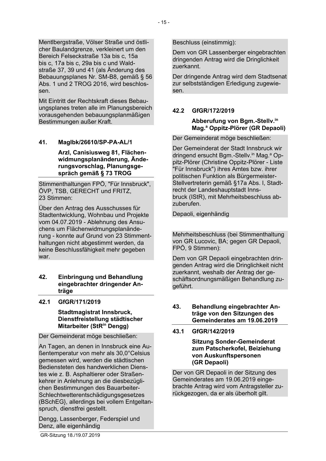 vom 04.07.2019 - Ablehnung des Ansuchens um Flächenwidmungsplanänderung - konnte auf Grund von 23 Stimmenthaltungen nicht abgestimmt werden, da