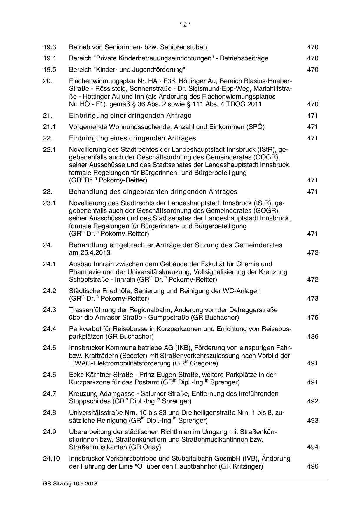 seiner Ausschüsse und des Stadtsenates der Landeshauptstadt Innsbruck,