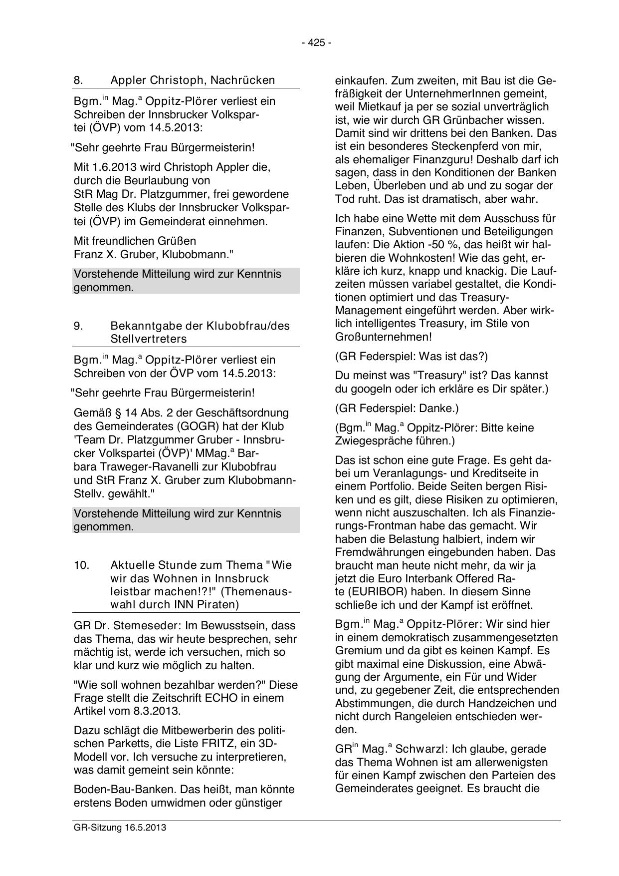 Schreiben der Innsbrucker Volkspartei (ÖVP) vom 14.5.2013: