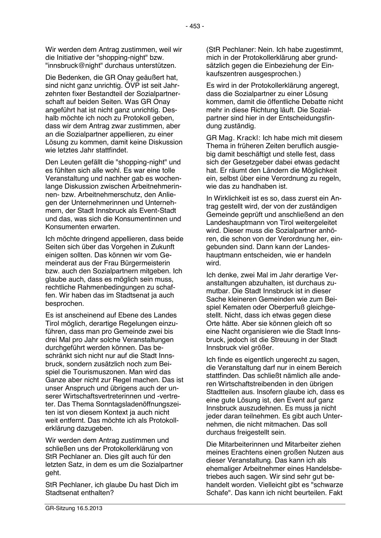 Veranstaltung und nachher gab es wochenlange Diskussion zwischen Arbeitnehmerinnen- bzw. Arbeitnehmerschutz, den Anliegen der Unternehmerinnen und Unternehmern, der Stadt Innsbruck als Event-Stadt