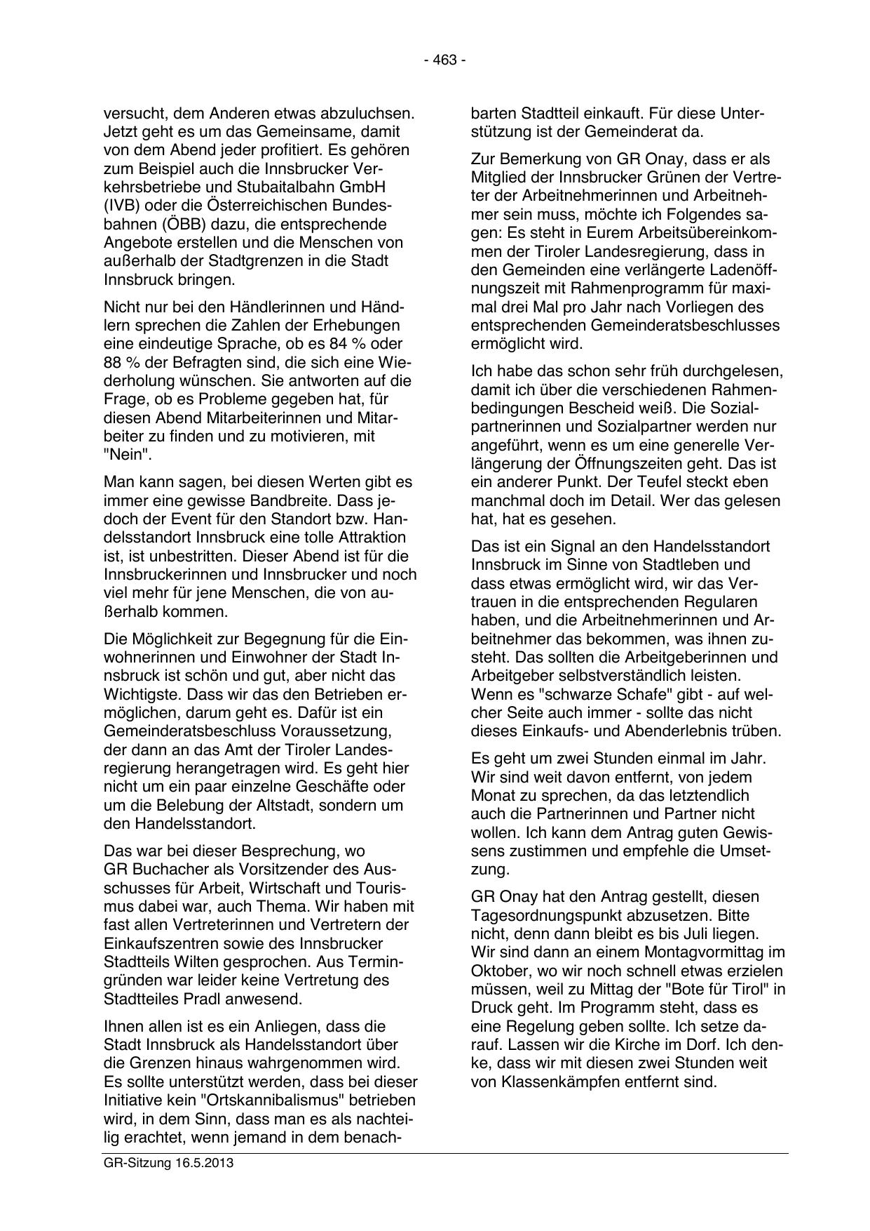 Mitglied der Innsbrucker Grünen der Vertreter der Arbeitnehmerinnen und Arbeitnehmer sein muss, möchte ich Folgendes sagen: Es steht in Eurem Arbeitsübereinkommen der Tiroler Landesregierung, dass in
