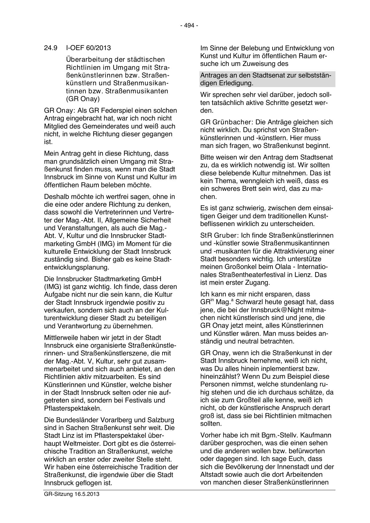 StR Gruber: Ich finde Straßenkünstlerinnen