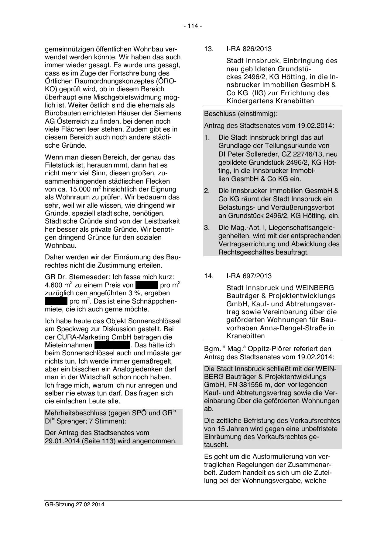 Mehrheitsbeschluss (gegen SPÖ und GRin