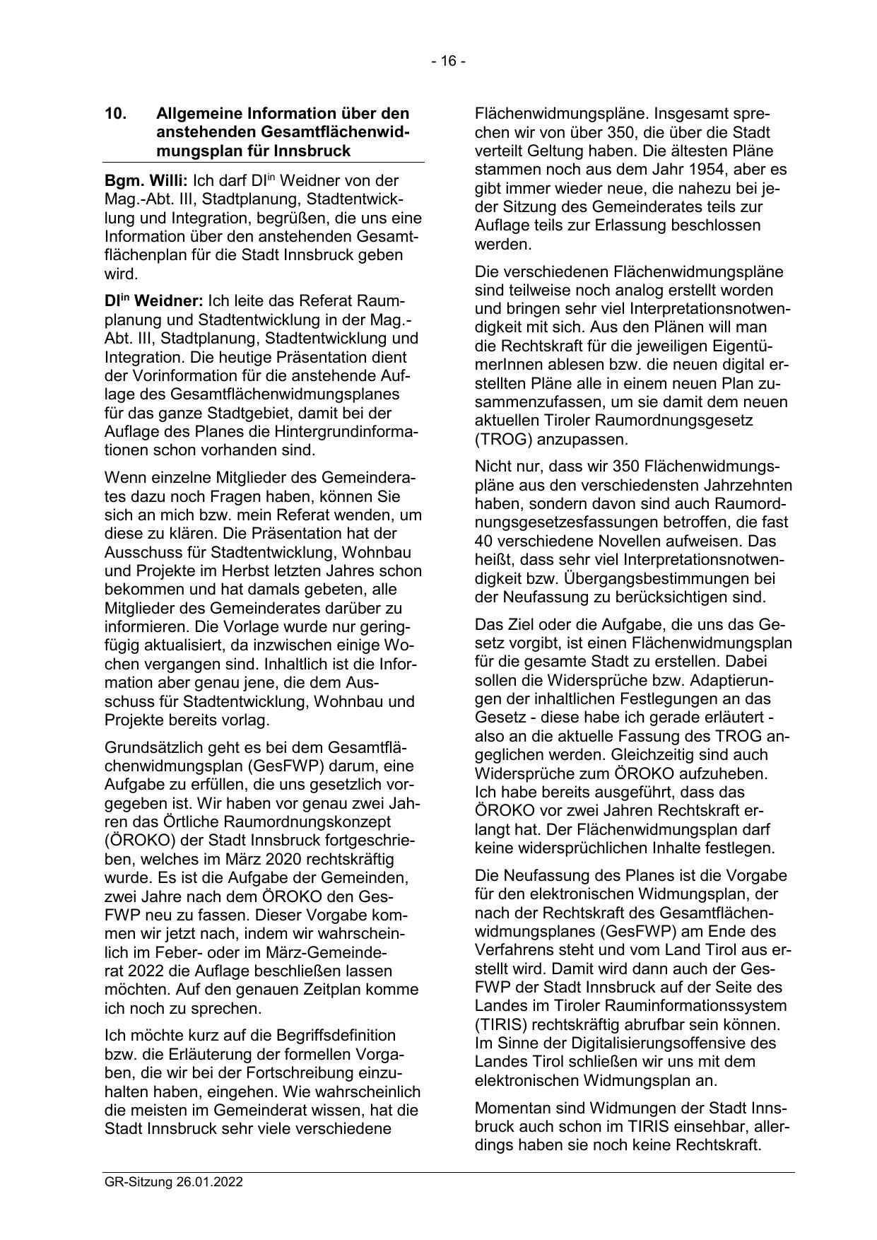 zwei Jahre nach dem ÖROKO den GesFWP neu zu fassen. Dieser Vorgabe kommen wir jetzt nach, indem wir wahrscheinlich im Feber- oder im März-Gemeinderat 2022 die Auflage beschließen lassen