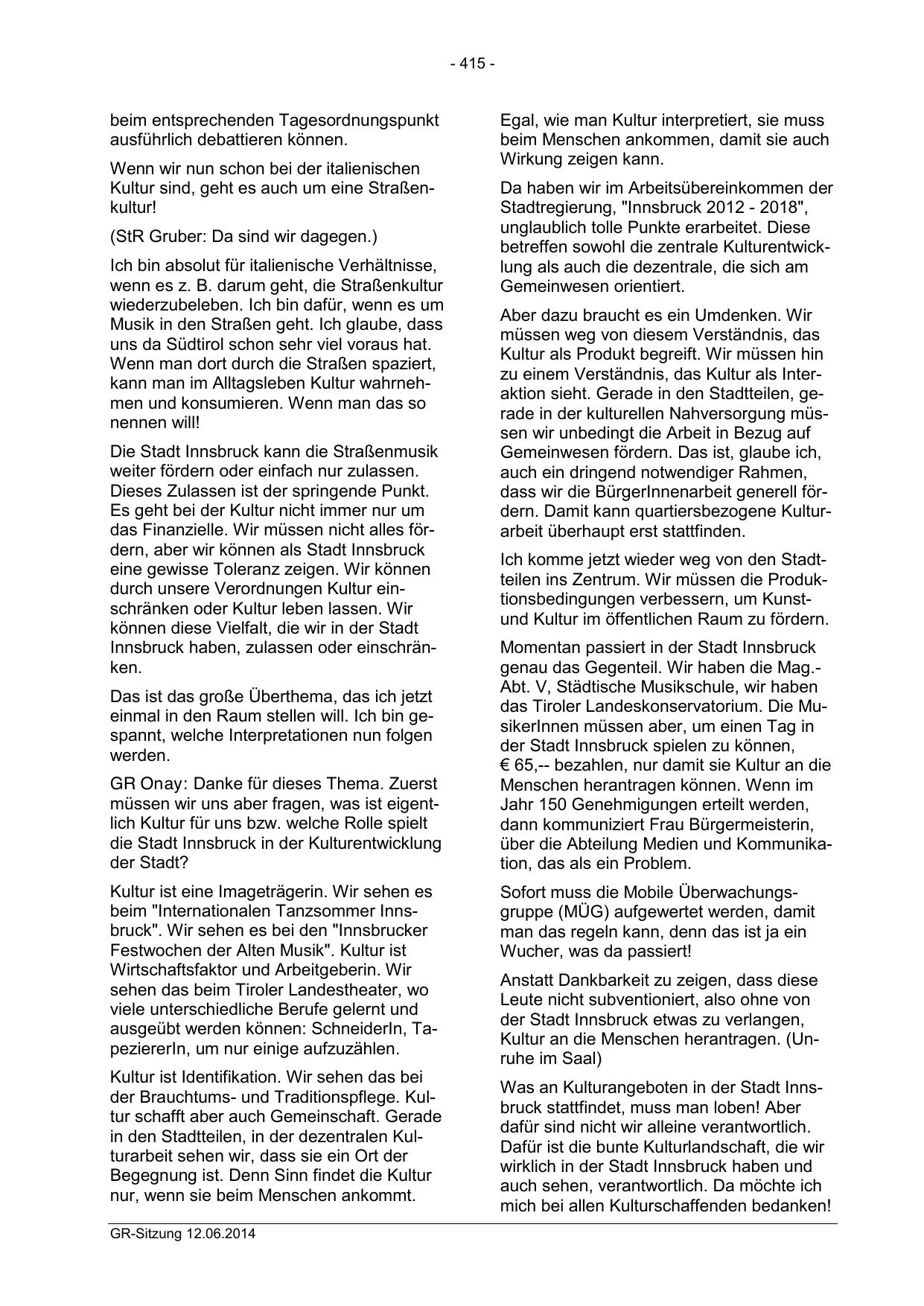 das Finanzielle. Wir müssen nicht alles fördern, aber wir können als Stadt Innsbruck