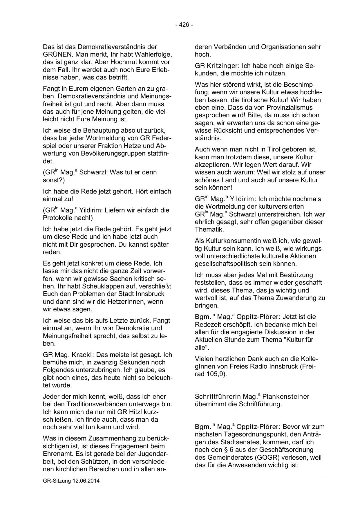 dass bei jeder Wortmeldung von GR Federspiel oder unserer Fraktion Hetze und Abwertung von Bevölkerungsgruppen stattfindet.