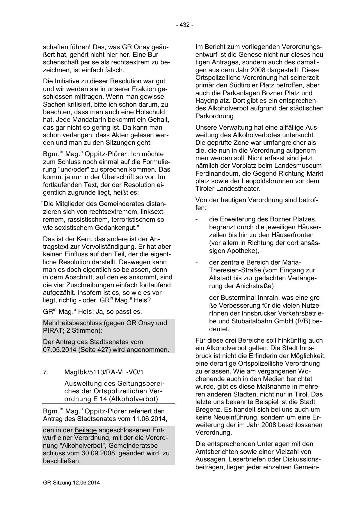 ein Alkoholverbot gelten. Die Stadt Innsbruck ist nicht die Erfinderin der Möglichkeit,