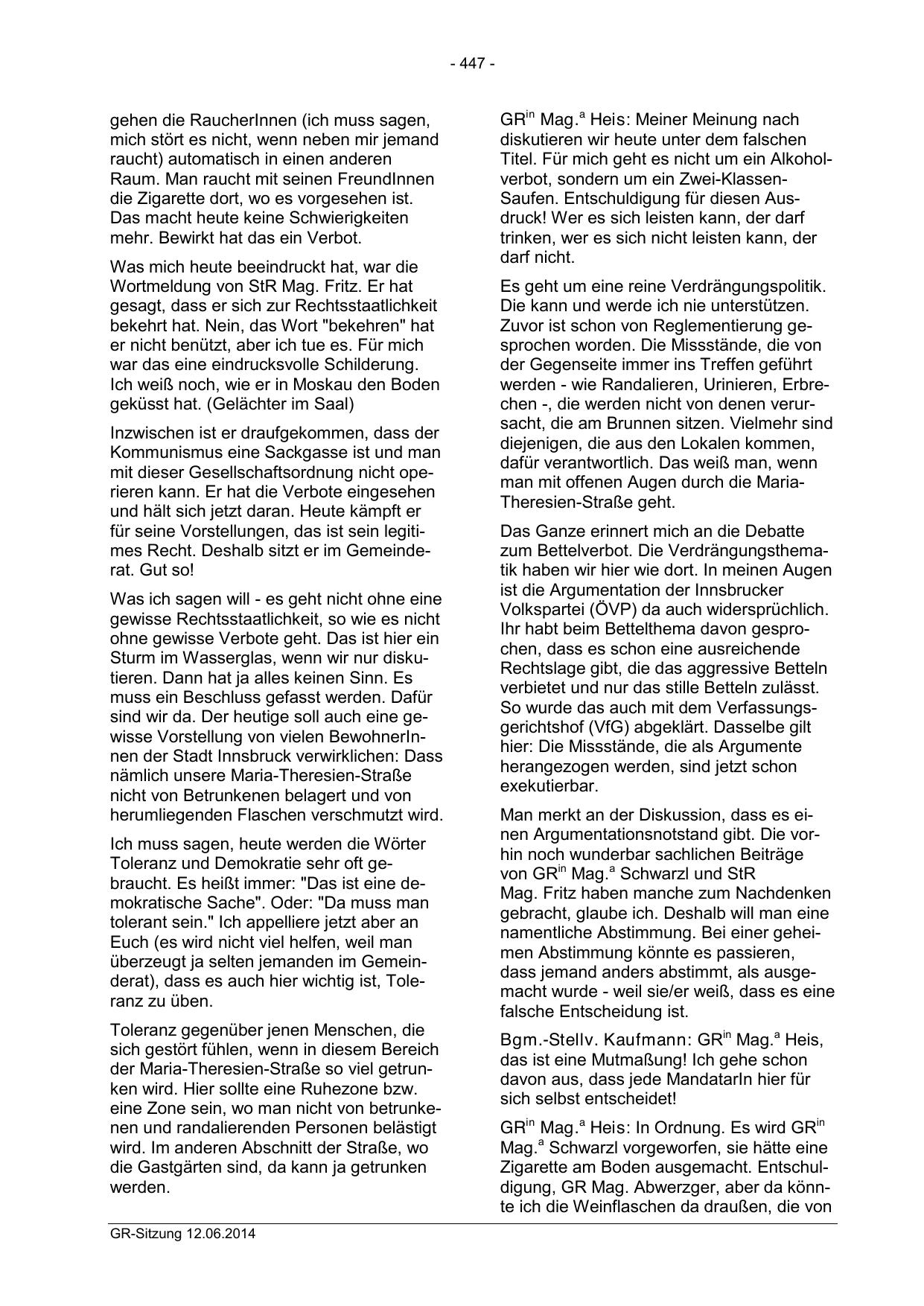 sind wir da. Der heutige soll auch eine gewisse Vorstellung von vielen BewohnerInnen der Stadt Innsbruck verwirklichen: Dass