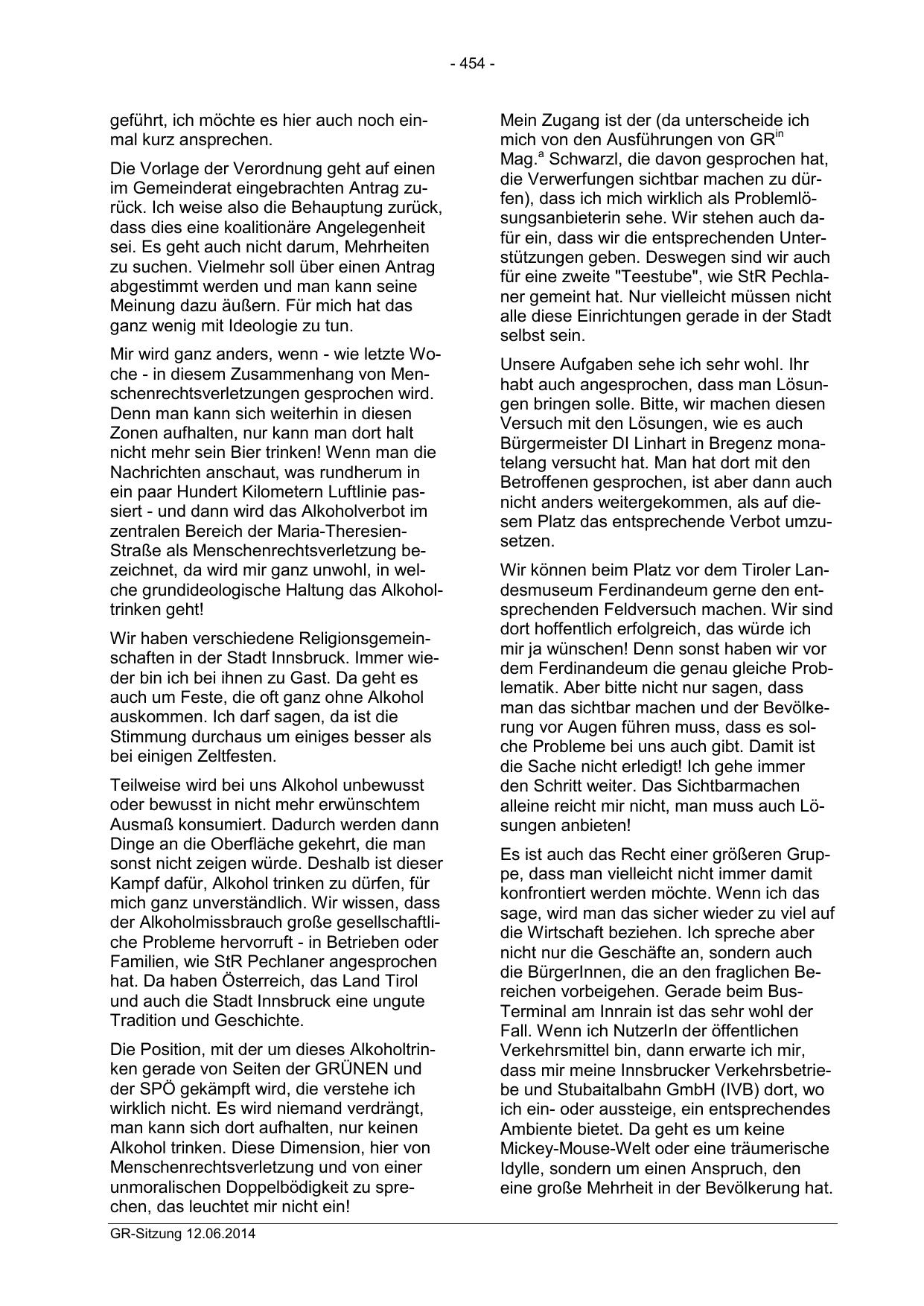 zentralen Bereich der Maria-TheresienStraße als Menschenrechtsverletzung bezeichnet, da wird mir ganz unwohl, in welche grundideologische Haltung das Alkoholtrinken geht!