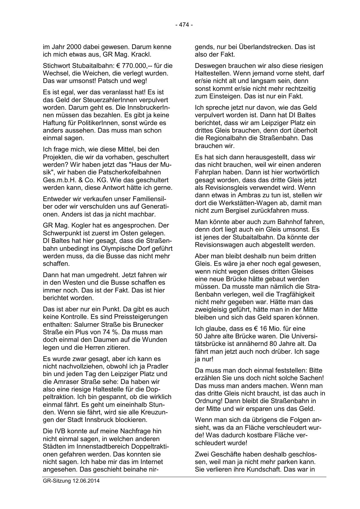 worden. Darum geht es. Die InnsbruckerInnen müssen das bezahlen. Es gibt ja keine