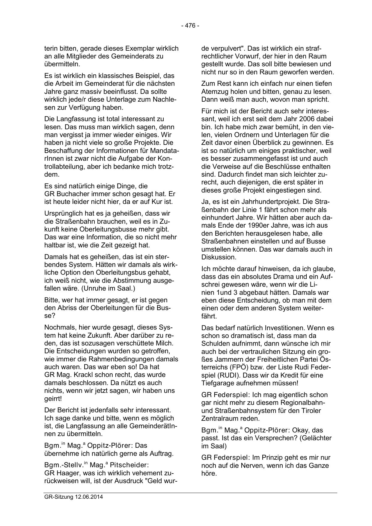 ist, die Langfassung an alle GemeinderätInnen zu übermitteln.