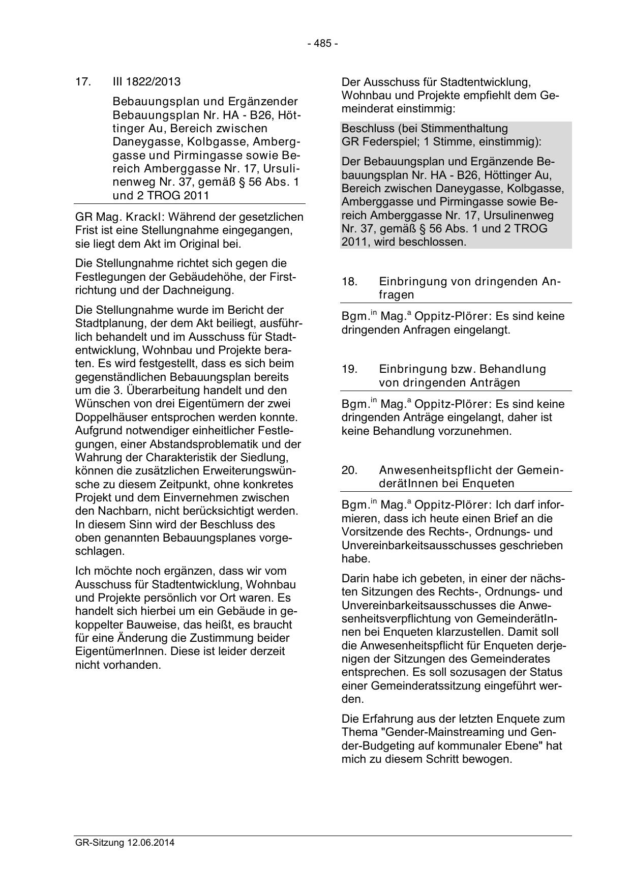 Bgm.in Mag.a Oppitz-Plörer: Ich darf informieren, dass ich heute einen Brief an die