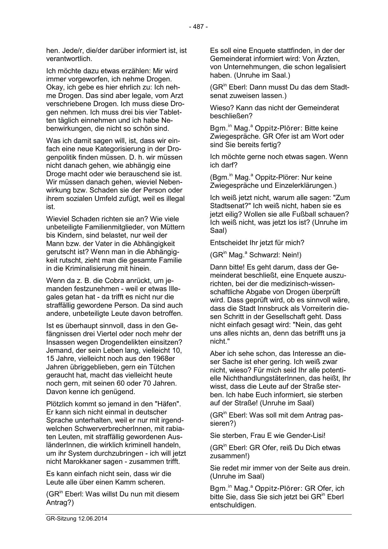 Dann bitte! Es geht darum, dass der Gemeinderat beschließt, eine Enquete auszurichten, bei der die medizinisch-wissenschaftliche Abgabe von Drogen überprüft
