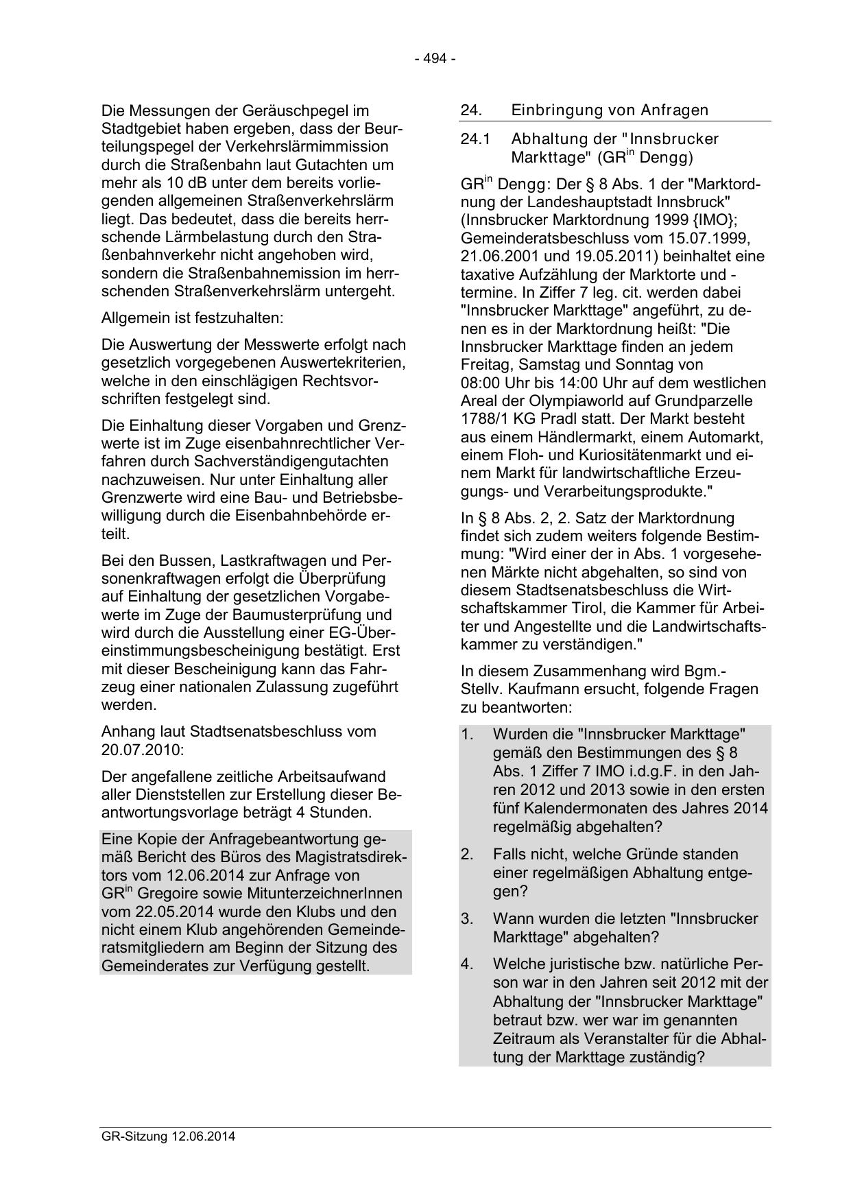 GRin Dengg: Der § 8 Abs. 1 der "Marktordnung der Landeshauptstadt Innsbruck"