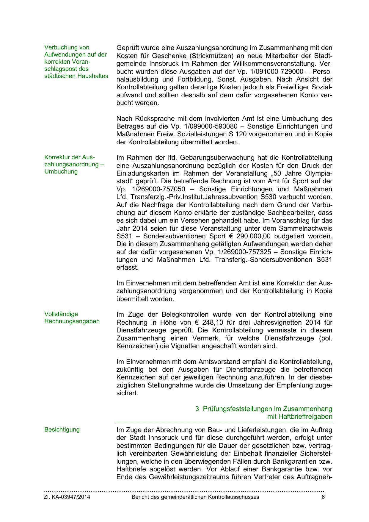 Im Rahmen der lfd. Gebarungsüberwachung hat die Kontrollabteilung