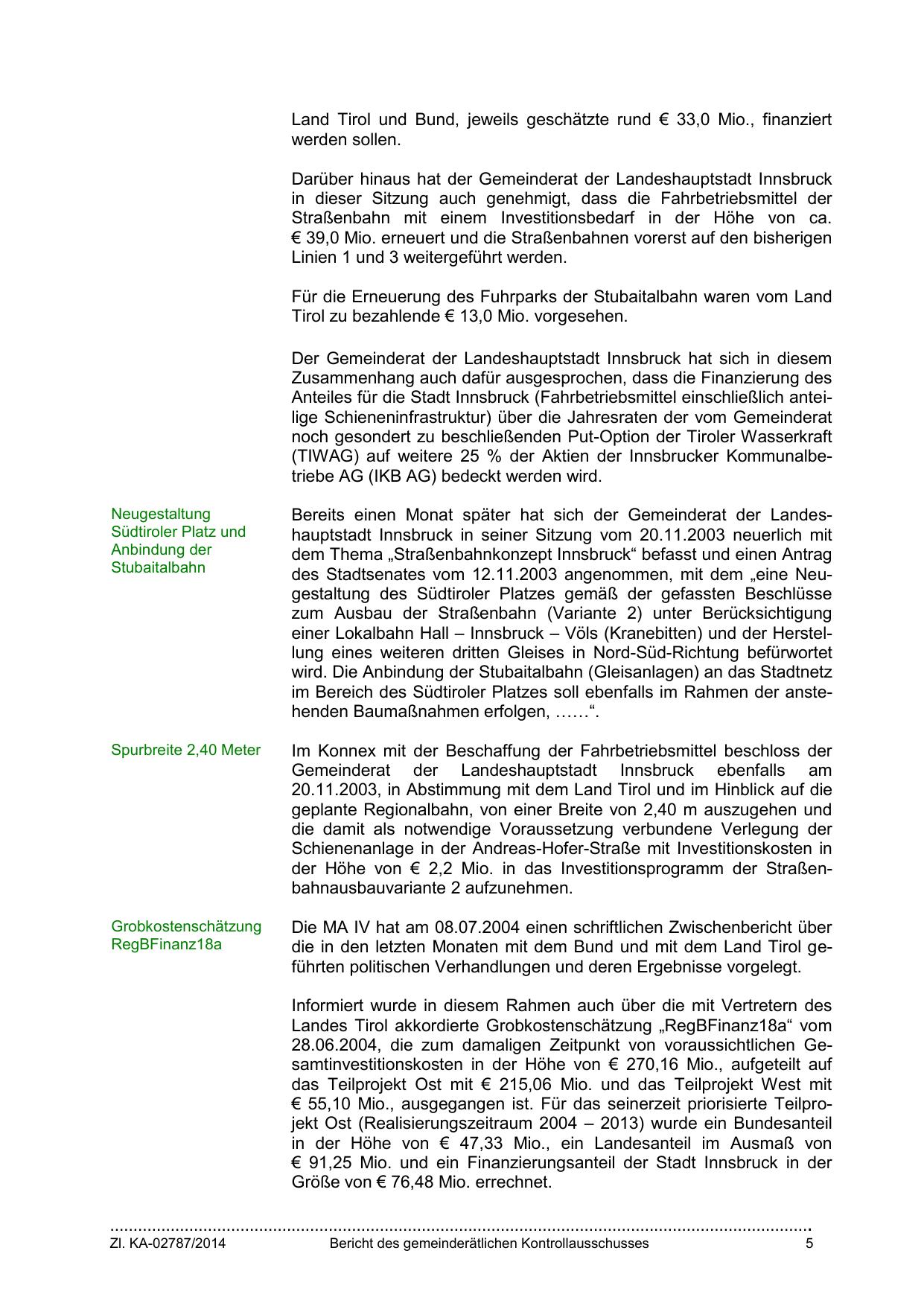 € 91,25 Mio. und ein Finanzierungsanteil der Stadt Innsbruck in der