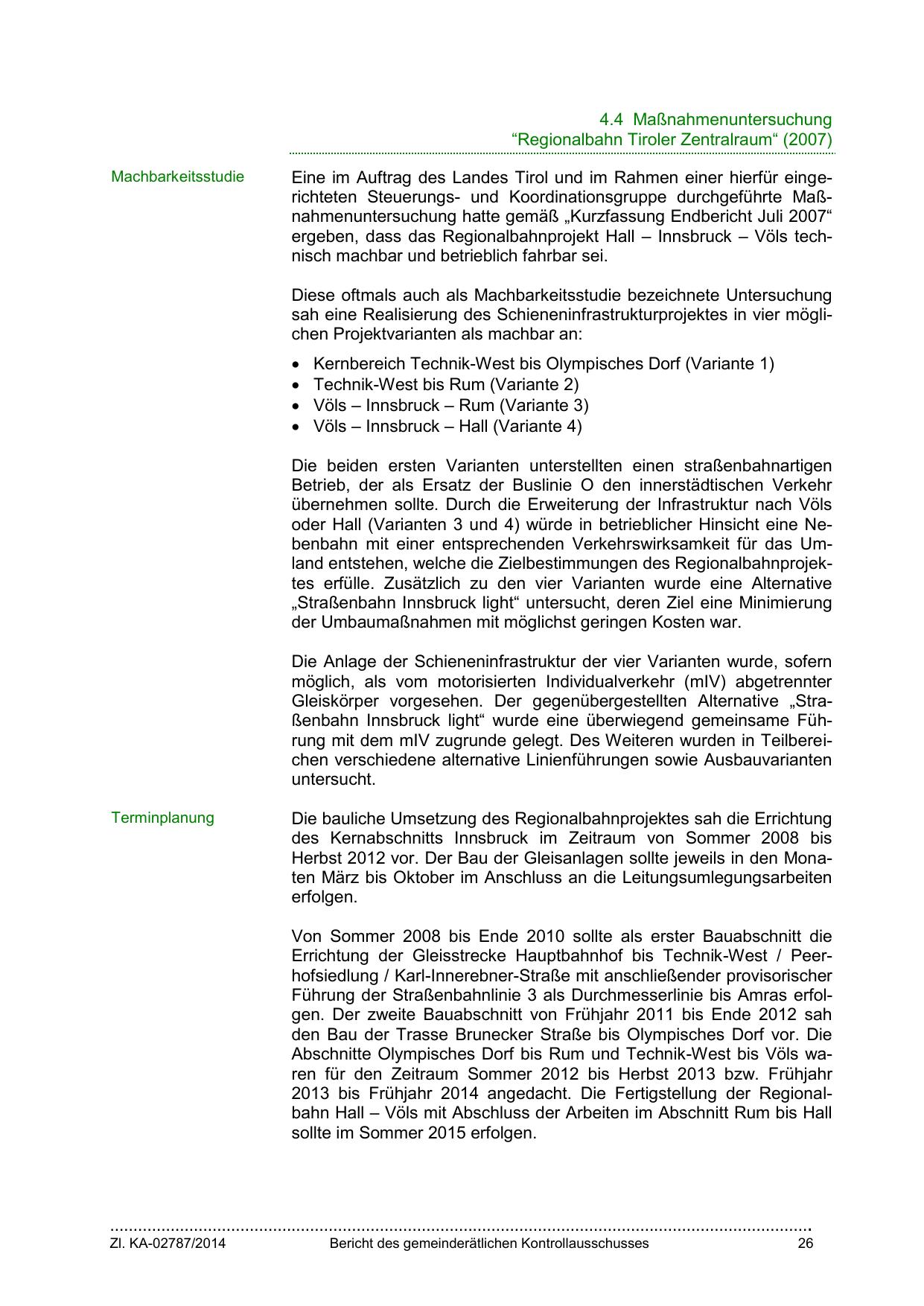 2013 bis Frühjahr 2014 angedacht. Die Fertigstellung der Regionalbahn Hall – Völs mit Abschluss der Arbeiten im Abschnitt Rum bis Hall