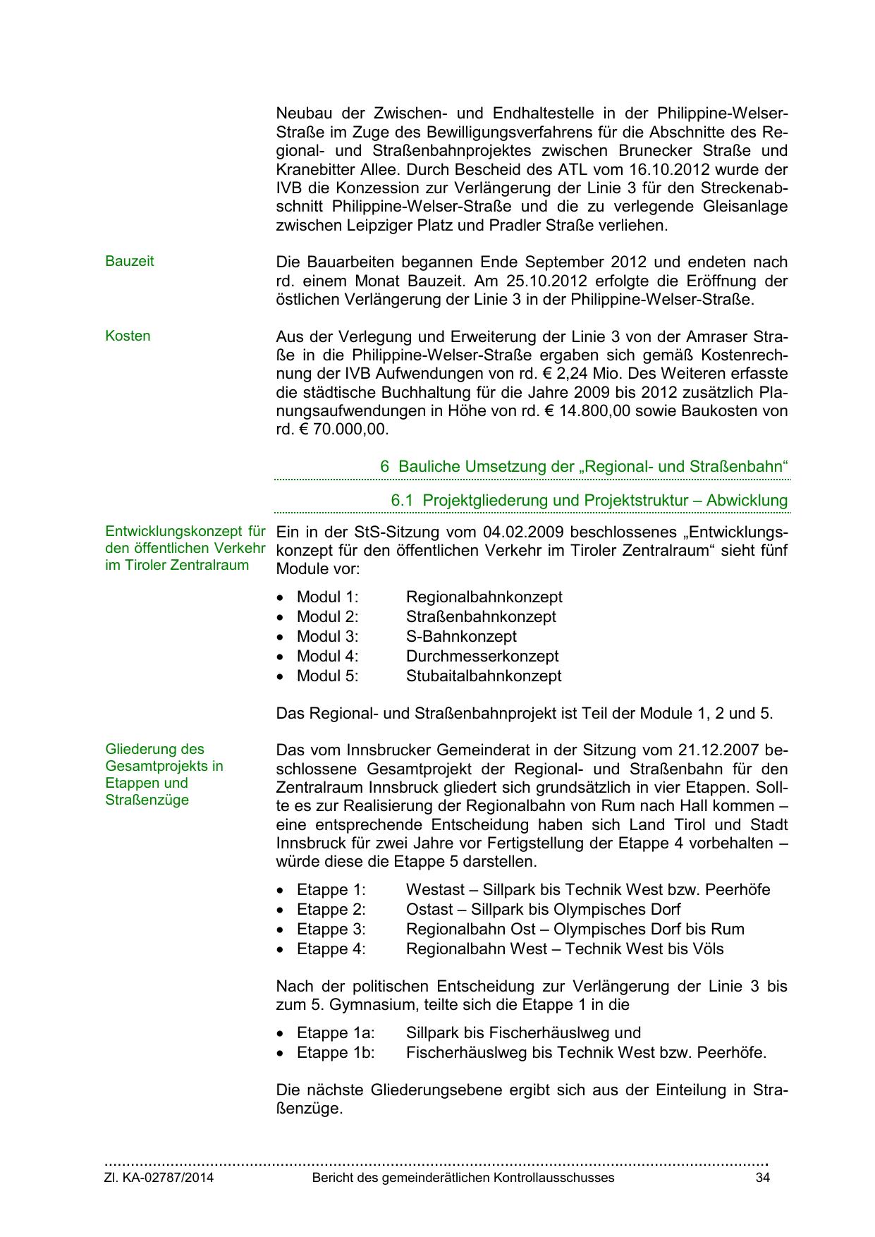 Entwicklungskonzept für Ein in der StS-Sitzung vom 04.02.2009 beschlossenes „Entwicklungsden öffentlichen Verkehr konzept für den öffentlichen Verkehr im Tiroler Zentralraum“ sieht fünf