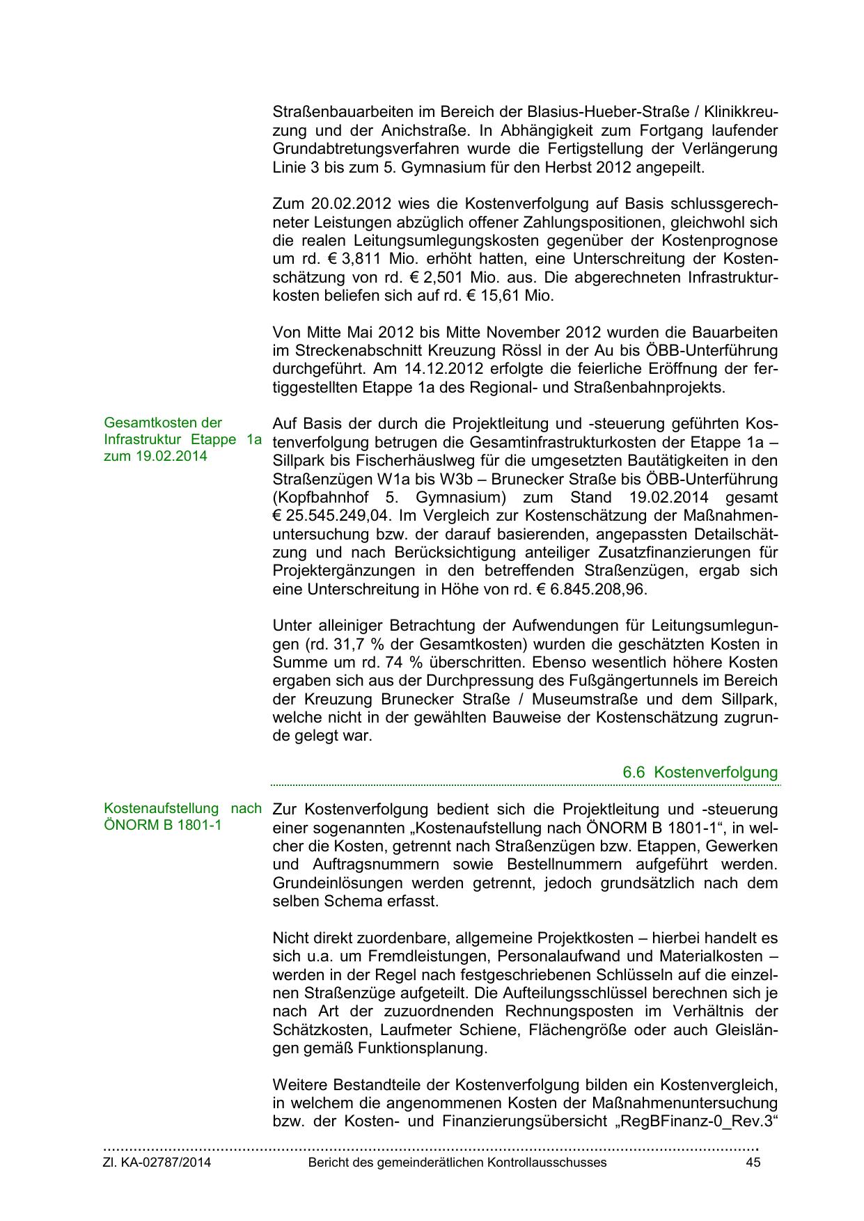 um rd. € 3,811 Mio. erhöht hatten, eine Unterschreitung der Kostenschätzung von rd. € 2,501 Mio. aus. Die abgerechneten Infrastrukturkosten beliefen sich auf rd. € 15,61 Mio.