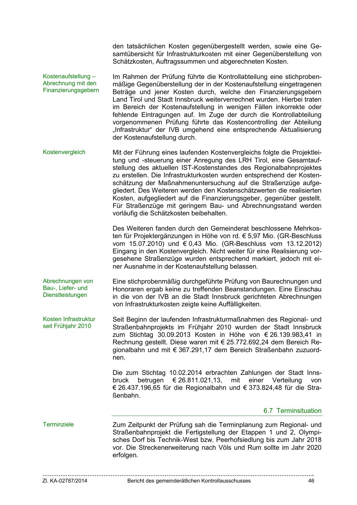 Die zum Stichtag 10.02.2014 erbrachten Zahlungen der Stadt Innsbruck betrugen € 26.811.021,13, mit einer Verteilung von