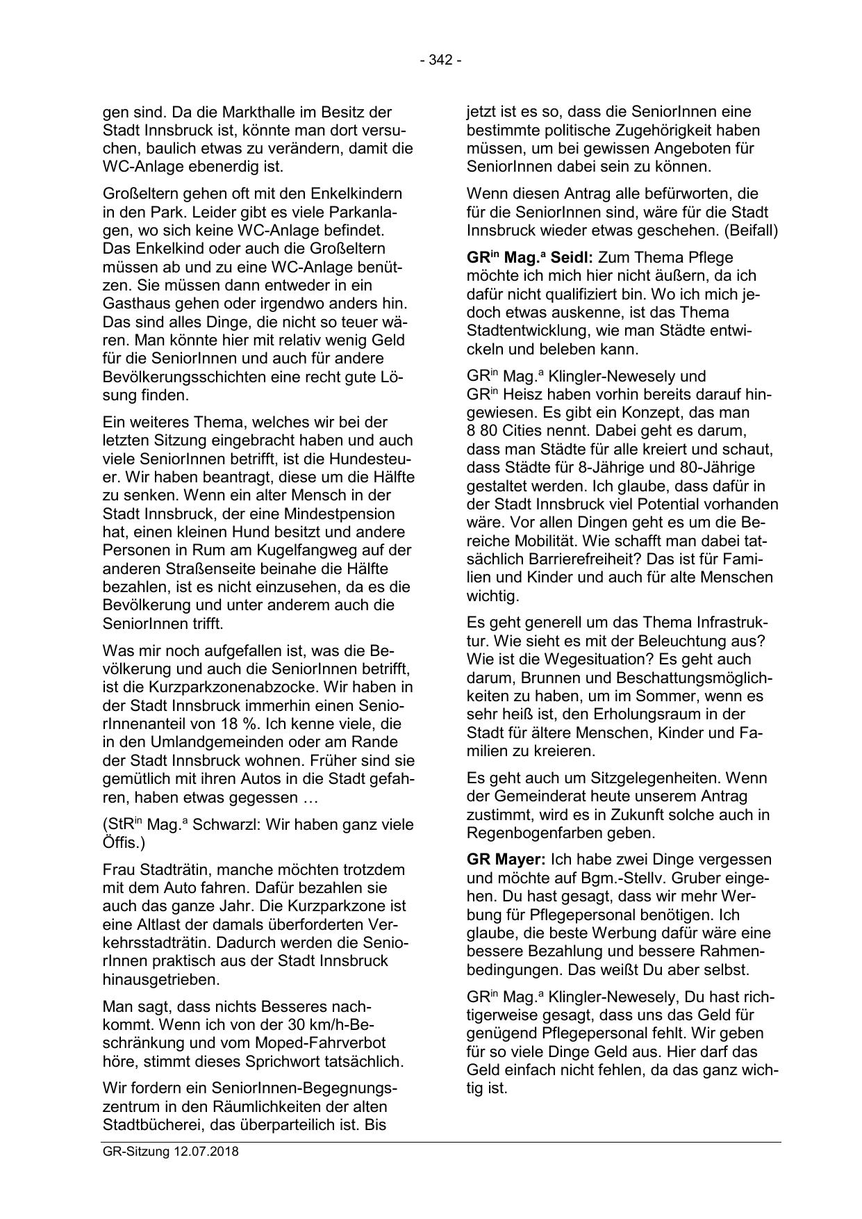 der Stadt Innsbruck immerhin einen SeniorInnenanteil von 18 %. Ich kenne viele, die