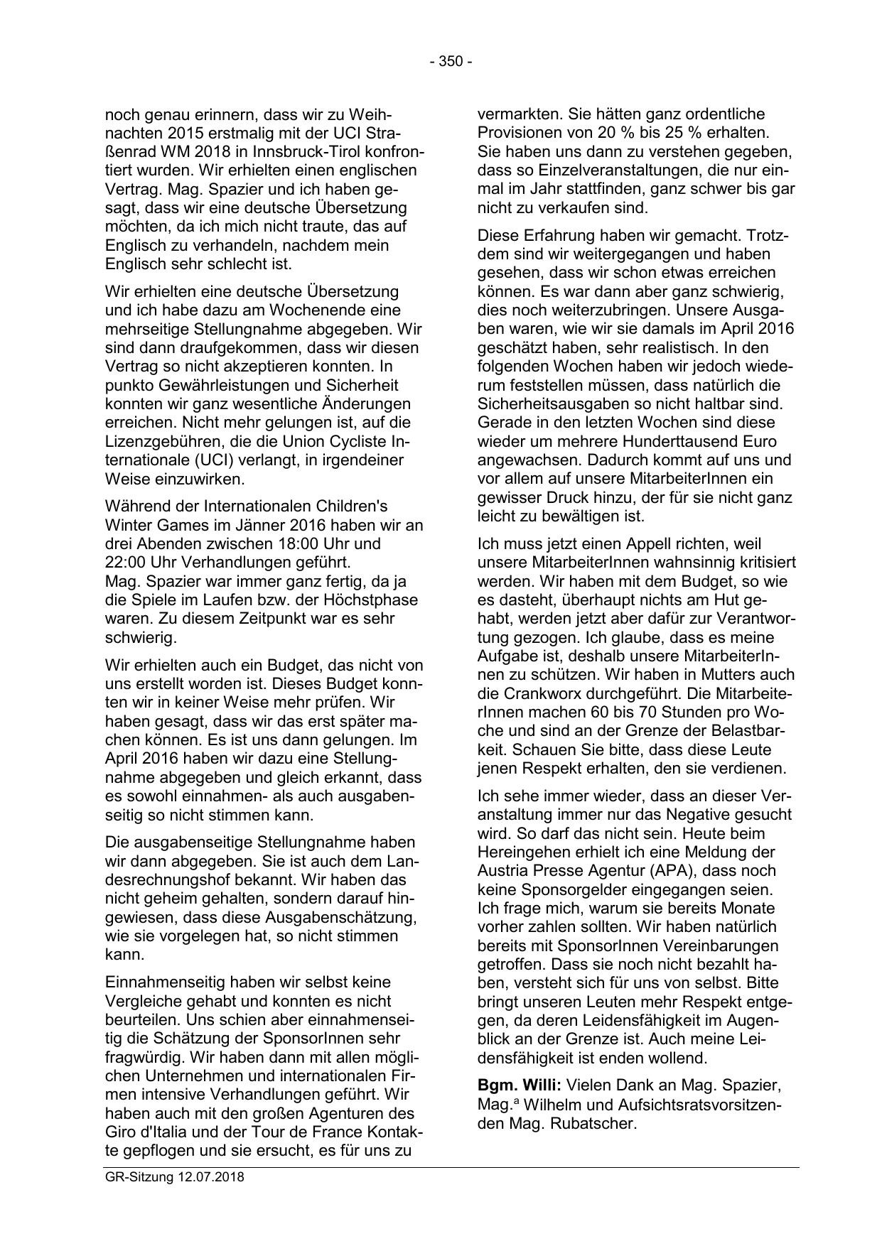 Bgm. Willi: Vielen Dank an Mag. Spazier,