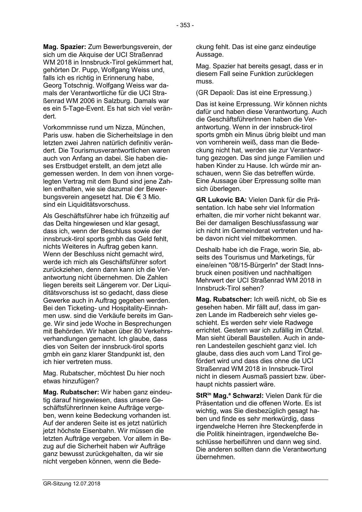 Mag. Rubatscher: Wir haben ganz eindeutig darauf hingewiesen, dass unsere GeschäftsführerInnen keine Aufträge vergeben, wenn keine Bedeckung vorhanden ist.