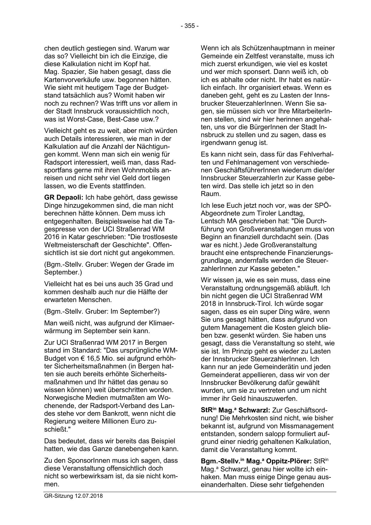 daneben geht, geht es zu Lasten der Innsbrucker SteuerzahlerInnen. Wenn Sie sagen, sie müssen sich vor Ihre MitarbeiterInnen stellen, sind wir hier herinnen angehalten, uns vor die BürgerInnen der Stadt Innsbruck zu stellen und zu sagen, dass es