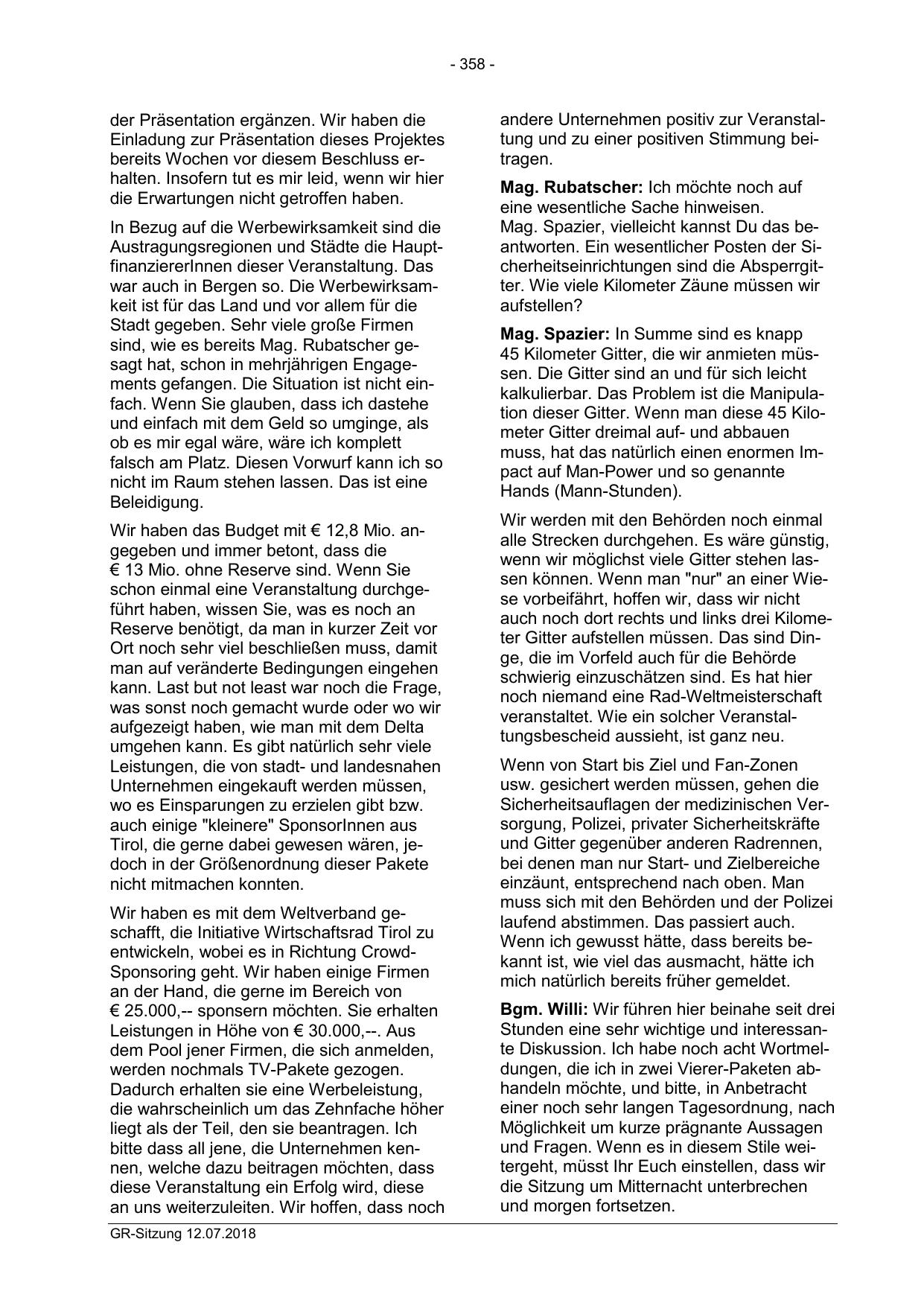 Bgm. Willi: Wir führen hier beinahe seit drei