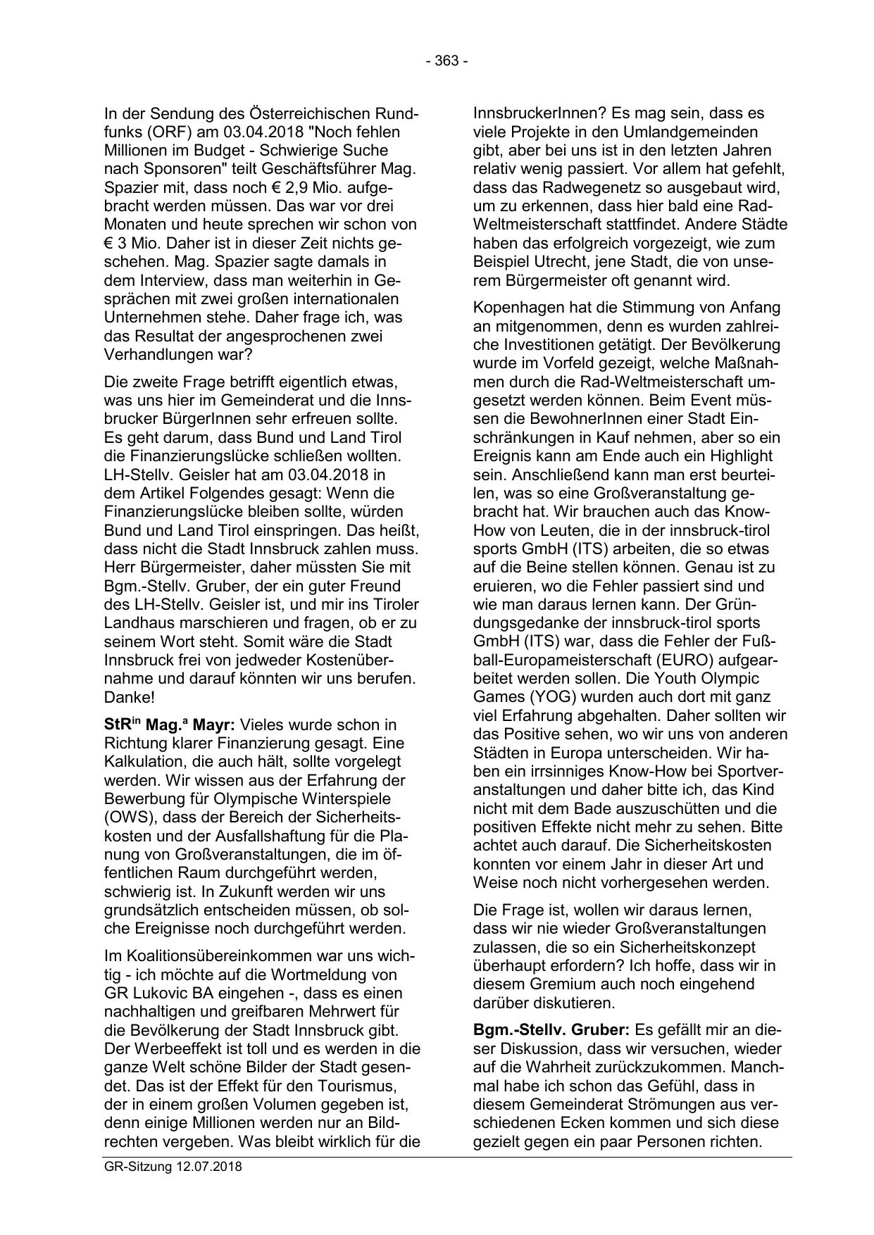 was uns hier im Gemeinderat und die Innsbrucker BürgerInnen sehr erfreuen sollte.