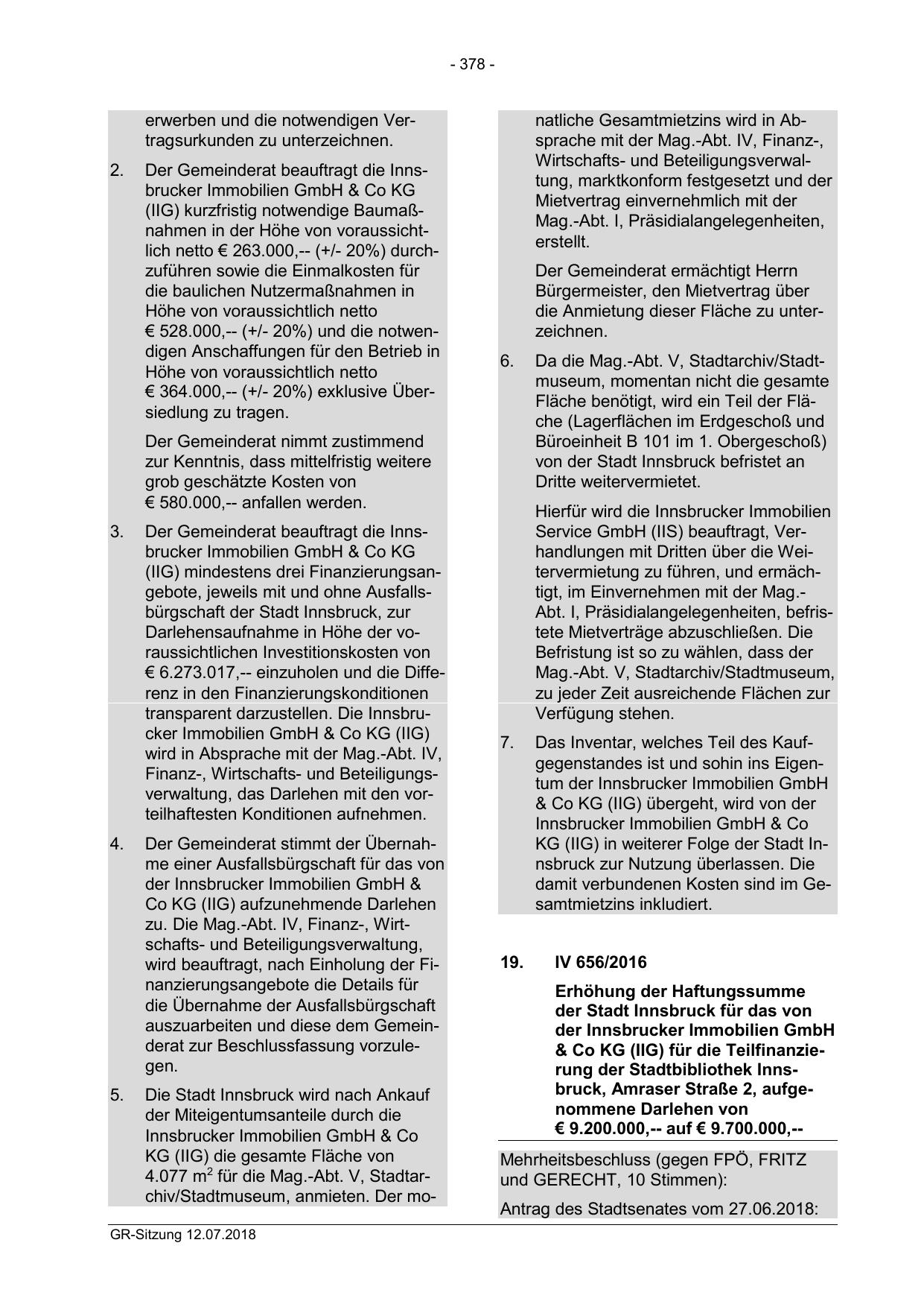 Der Gemeinderat beauftragt die Innsbrucker Immobilien GmbH & Co KG