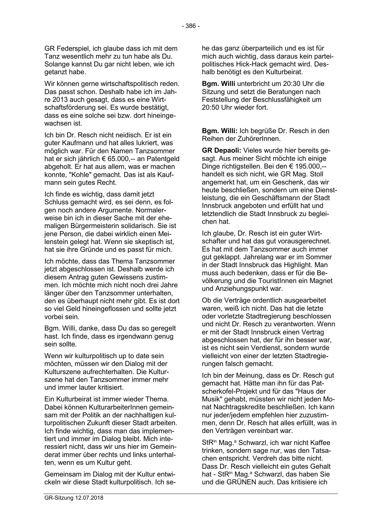 Gemeinsam im Dialog mit der Kultur entwickeln wir diese Stadt kulturpolitisch. Ich seGR-Sitzung 12.07.2018