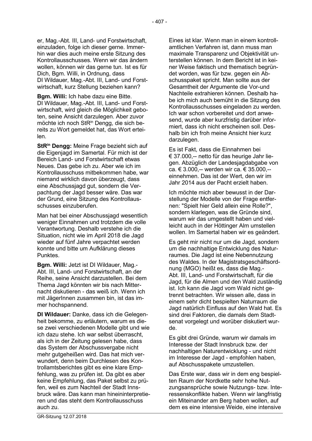 Bgm. Willi: Jetzt ist DI Wildauer, Mag.Abt. III, Land- und Forstwirtschaft, an der