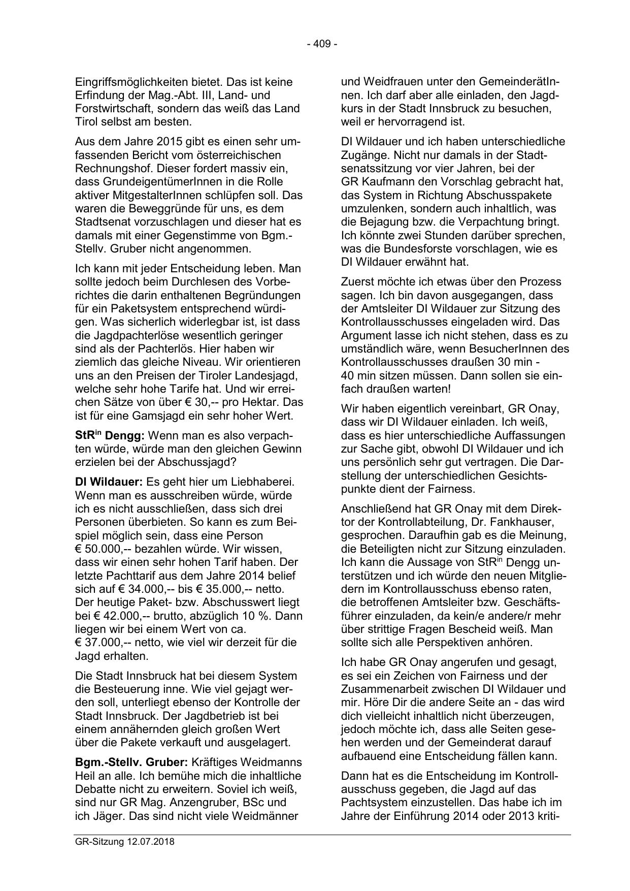 und Weidfrauen unter den GemeinderätInnen. Ich darf aber alle einladen, den Jagdkurs in der Stadt Innsbruck zu besuchen,