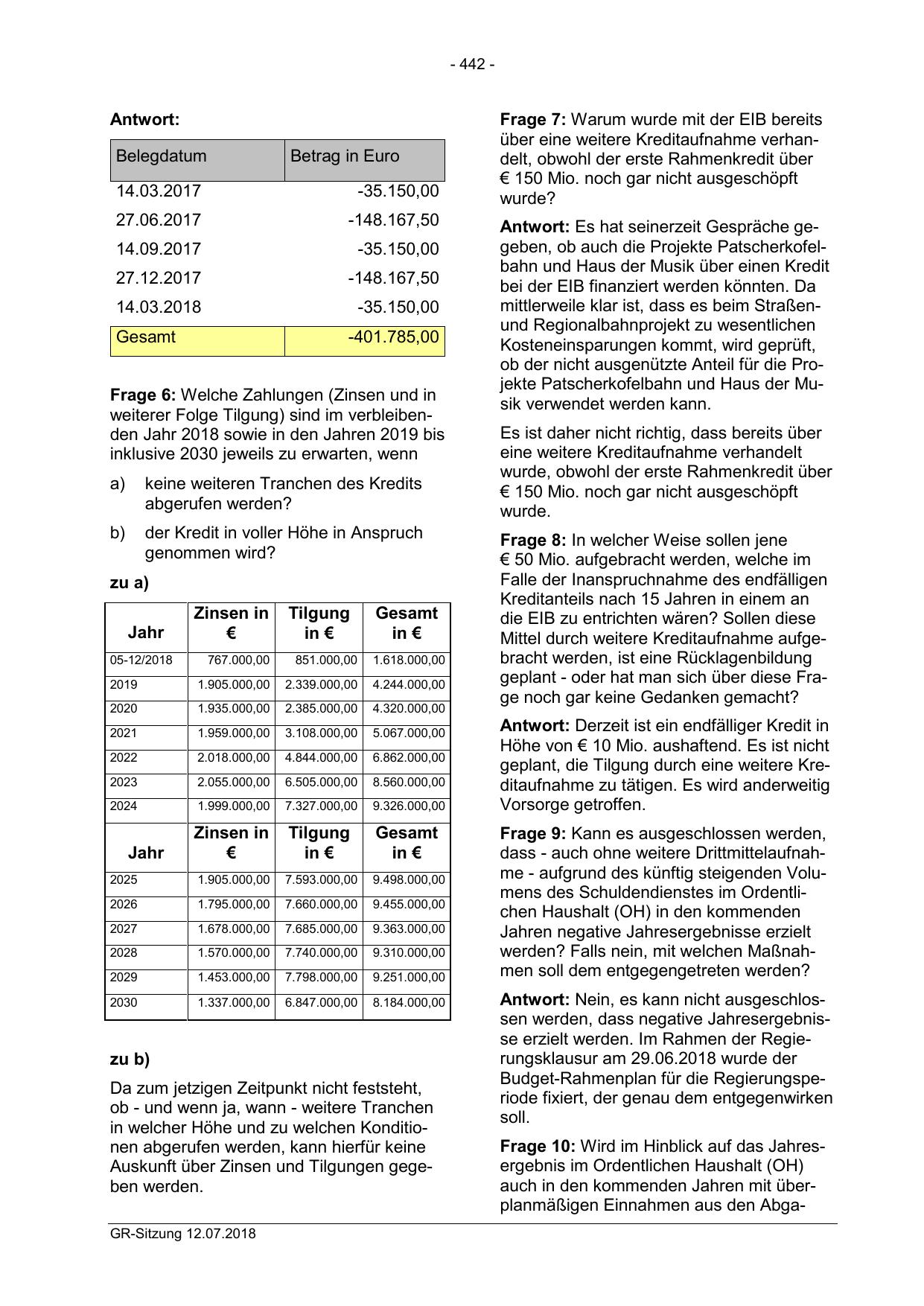 Auskunft über Zinsen und Tilgungen gegeben werden.