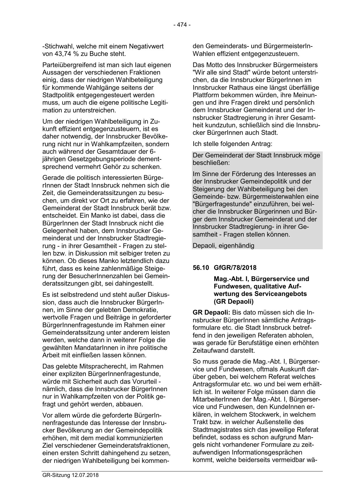 GR Depaoli: Bis dato müssen sich die Innsbrucker BürgerInnen sämtliche Antragsformulare etc. die Stadt Innsbruck betreffend in den jeweiligen Referaten abholen,