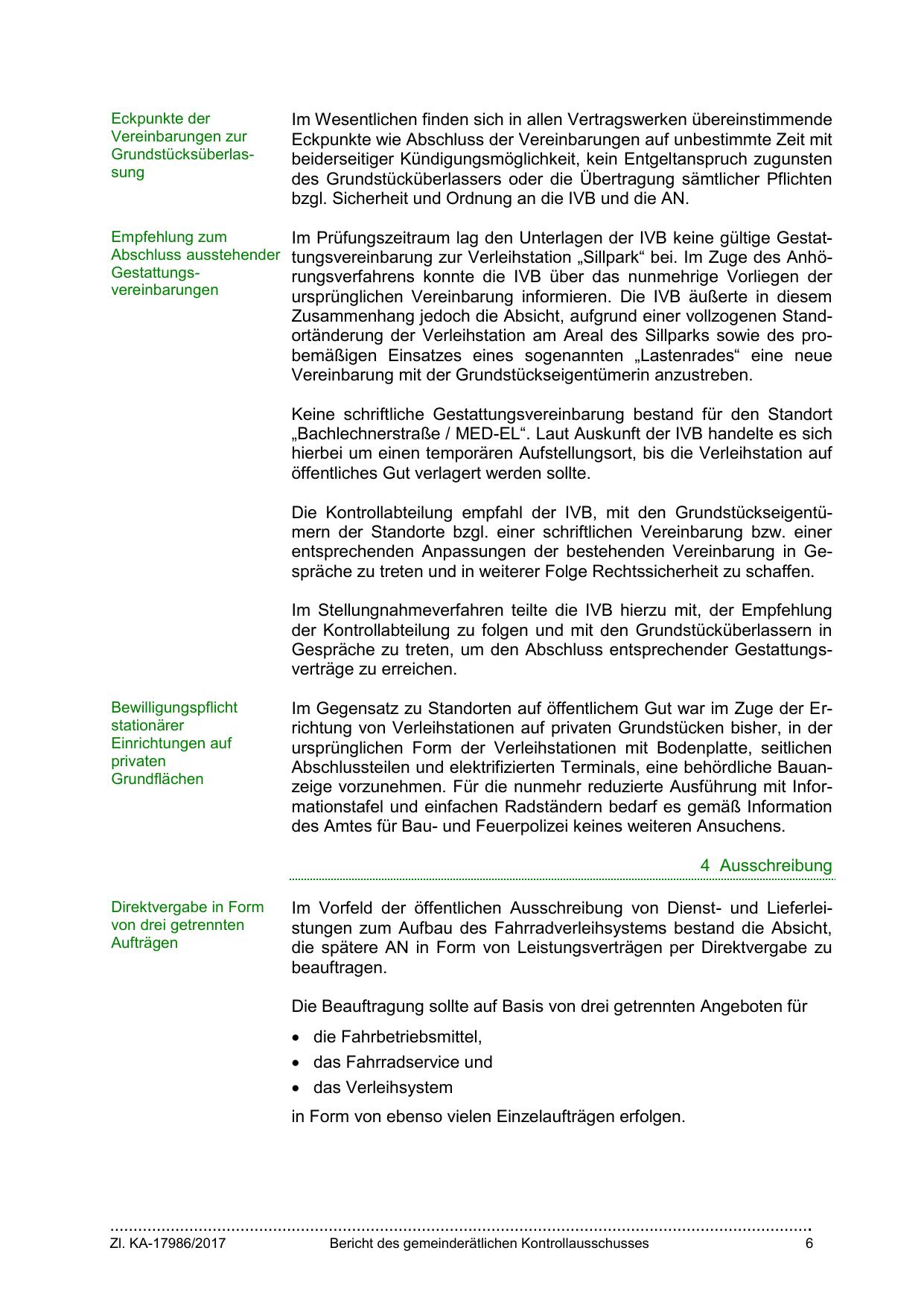 Im Prüfungszeitraum lag den Unterlagen der IVB keine gültige Gestattungsvereinbarung zur Verleihstation „Sillpark“ bei. Im Zuge des Anhörungsverfahrens konnte die IVB über das nunmehrige Vorliegen der