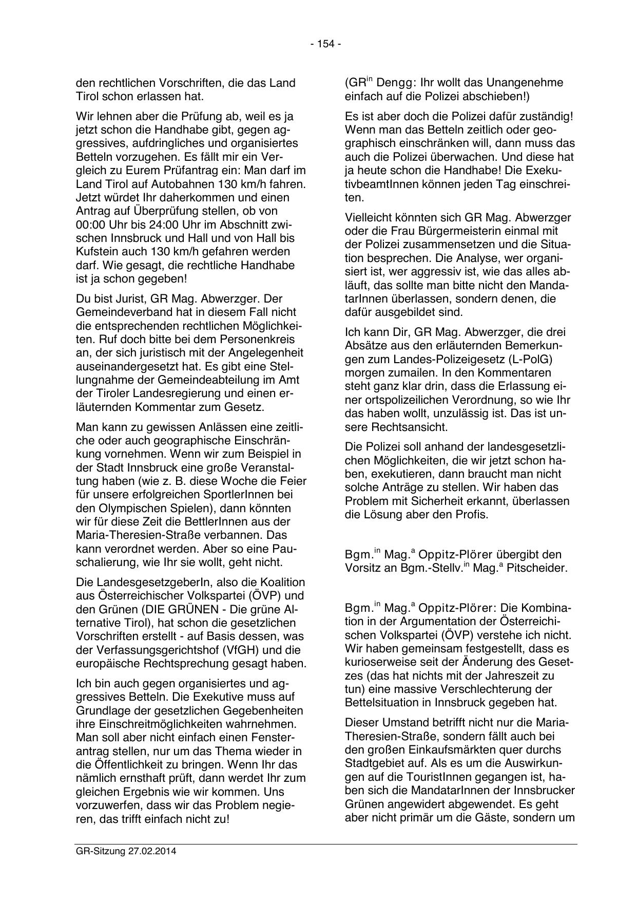 Stadtgebiet auf. Als es um die Auswirkungen auf die TouristInnen gegangen ist, haben sich die MandatarInnen der Innsbrucker