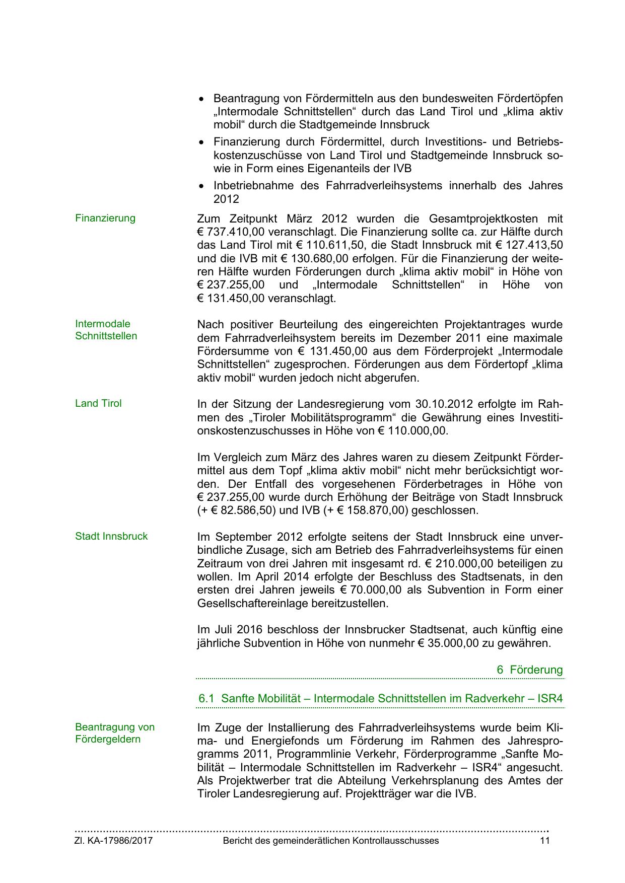 € 237.255,00 wurde durch Erhöhung der Beiträge von Stadt Innsbruck