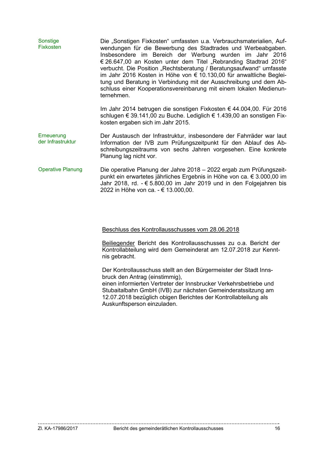 Der Kontrollausschuss stellt an den Bürgermeister der Stadt Innsbruck den Antrag (einstimmig),