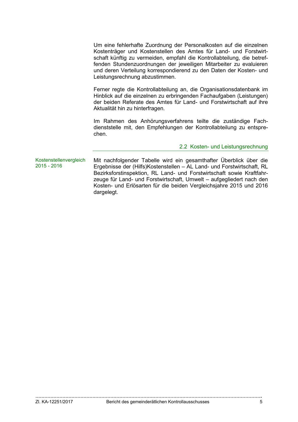 Kostenträger und Kostenstellen des Amtes für Land- und Forstwirtschaft künftig zu vermeiden, empfahl die Kontrollabteilung, die betreffenden Stundenzuordnungen der jeweiligen Mitarbeiter zu evaluieren