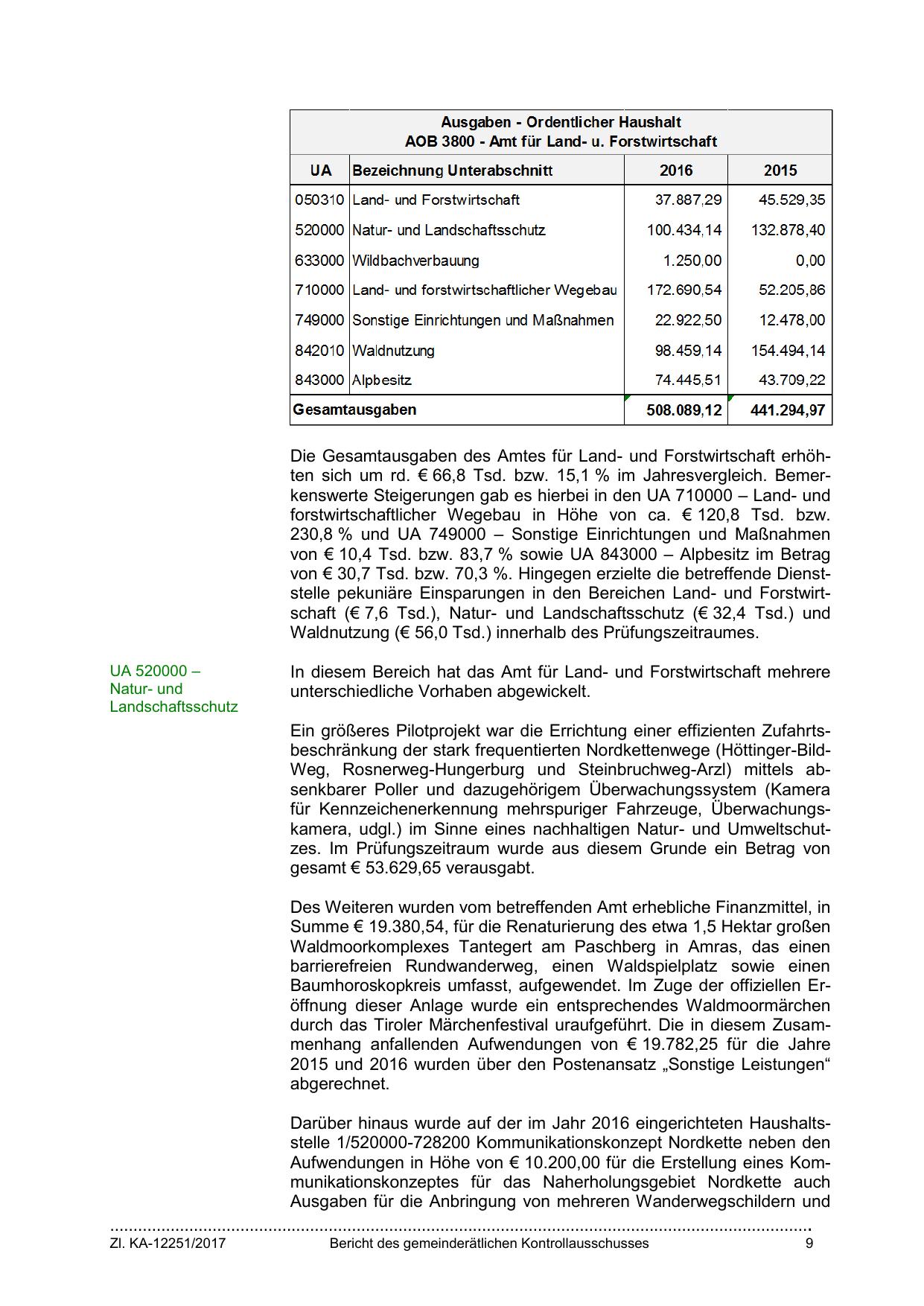 Darüber hinaus wurde auf der im Jahr 2016 eingerichteten Haushaltsstelle 1/520000-728200 Kommunikationskonzept Nordkette neben den