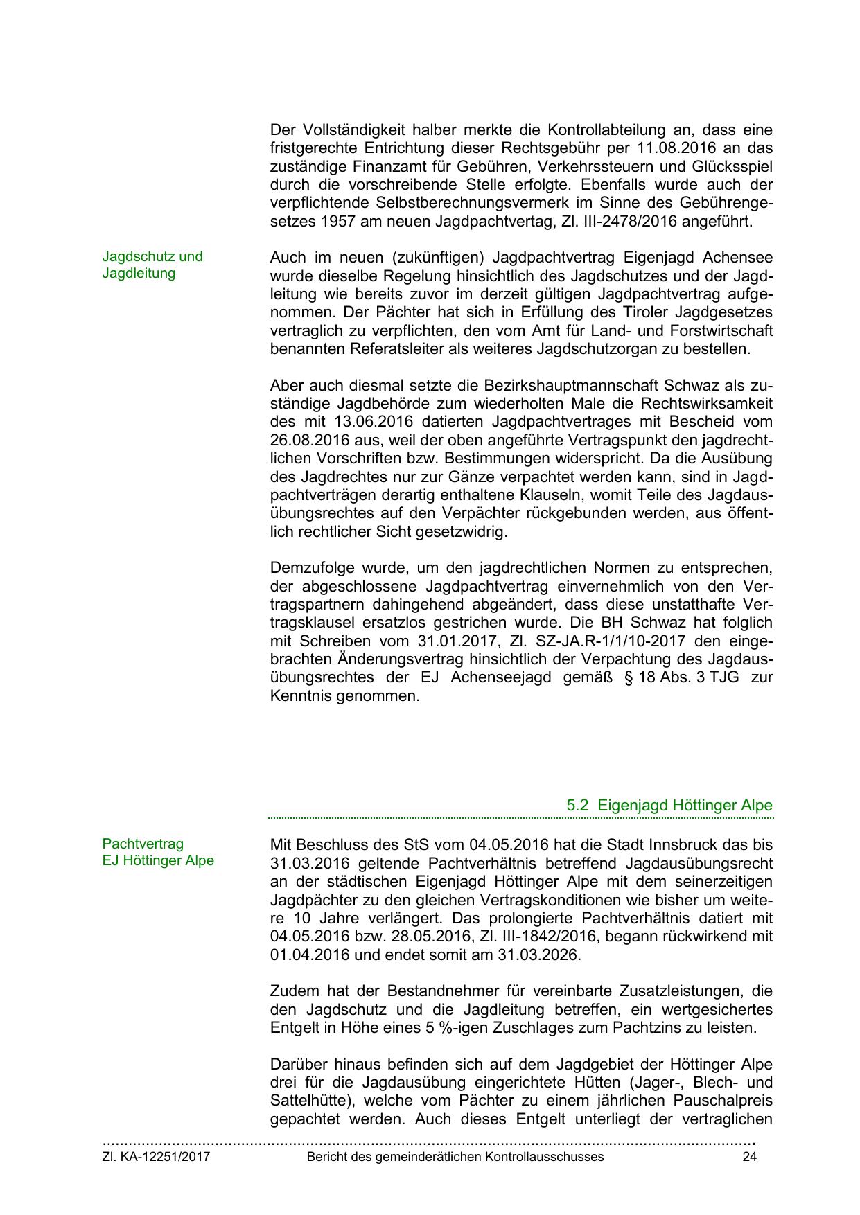 wurde dieselbe Regelung hinsichtlich des Jagdschutzes und der Jagdleitung wie bereits zuvor im derzeit gültigen Jagdpachtvertrag aufgenommen. Der Pächter hat sich in Erfüllung des Tiroler Jagdgesetzes