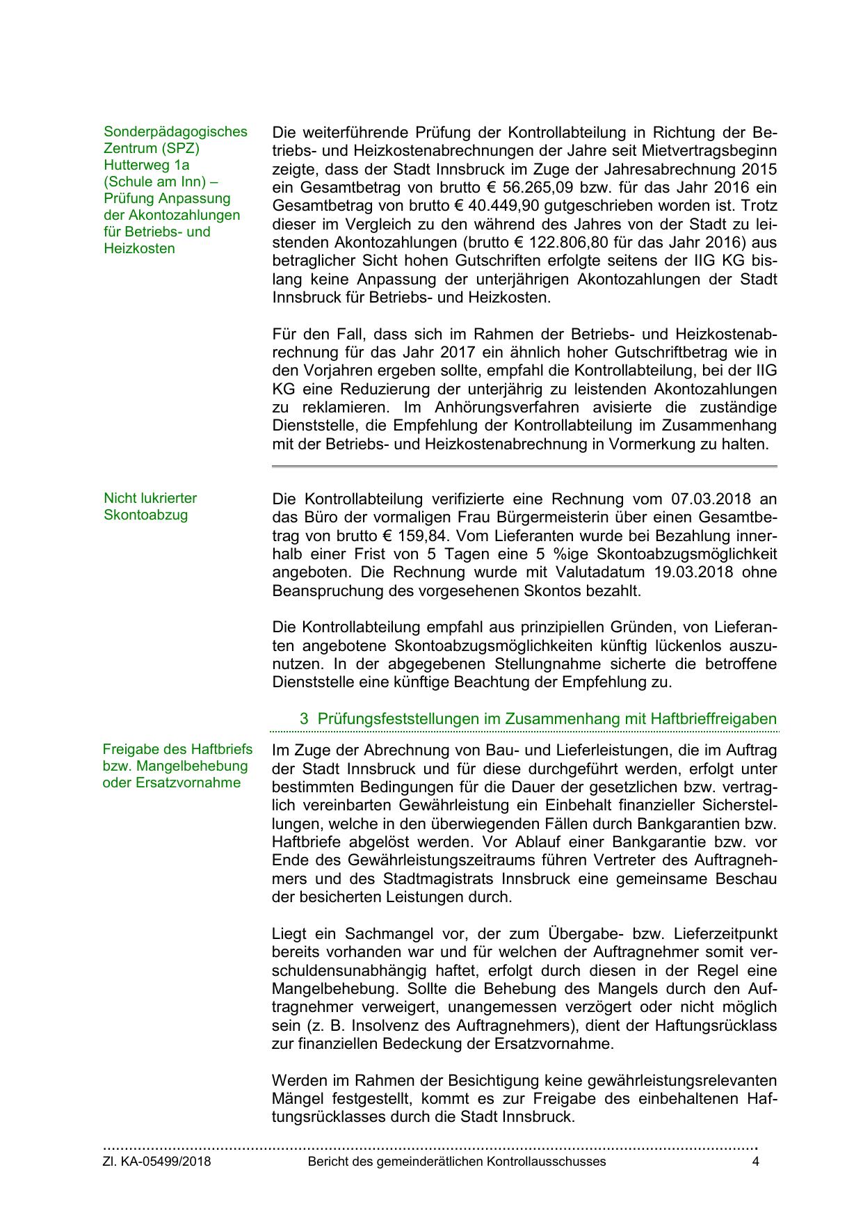 Die Kontrollabteilung empfahl aus prinzipiellen Gründen, von Lieferanten angebotene Skontoabzugsmöglichkeiten künftig lückenlos auszunutzen. In der abgegebenen Stellungnahme sicherte die betroffene