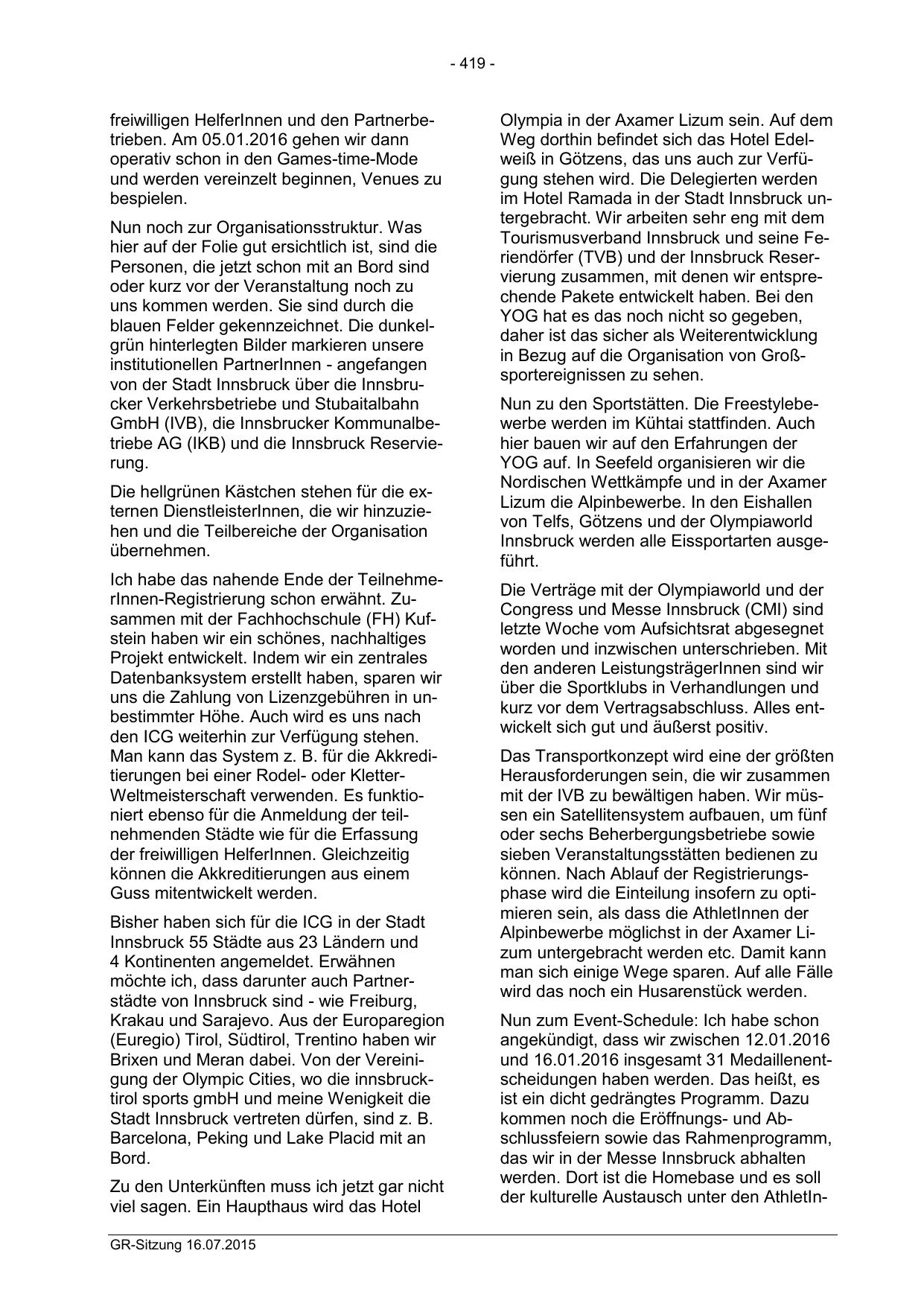 Alpinbewerbe möglichst in der Axamer Lizum untergebracht werden etc. Damit kann