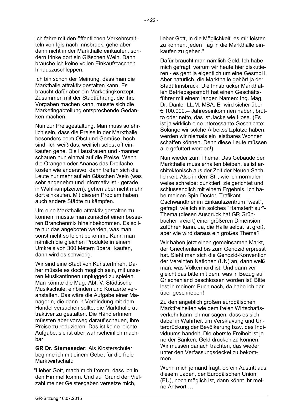 Stadt Innsbruck. Die Innsbrucker Markthallen BetriebsgesmbH hat einen Geschäftsführer mit einem langen Namen: Ing. Mag.