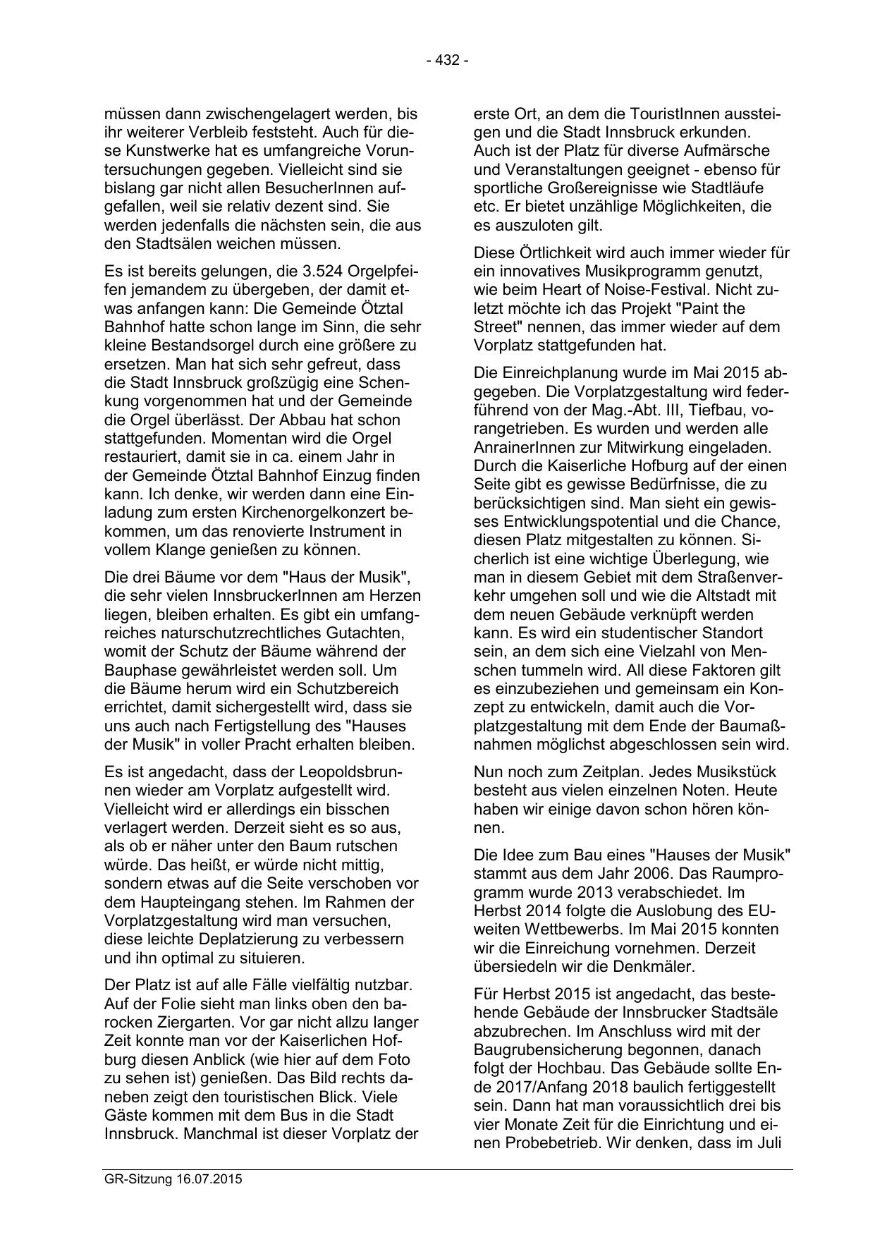die Stadt Innsbruck großzügig eine Schenkung vorgenommen hat und der Gemeinde